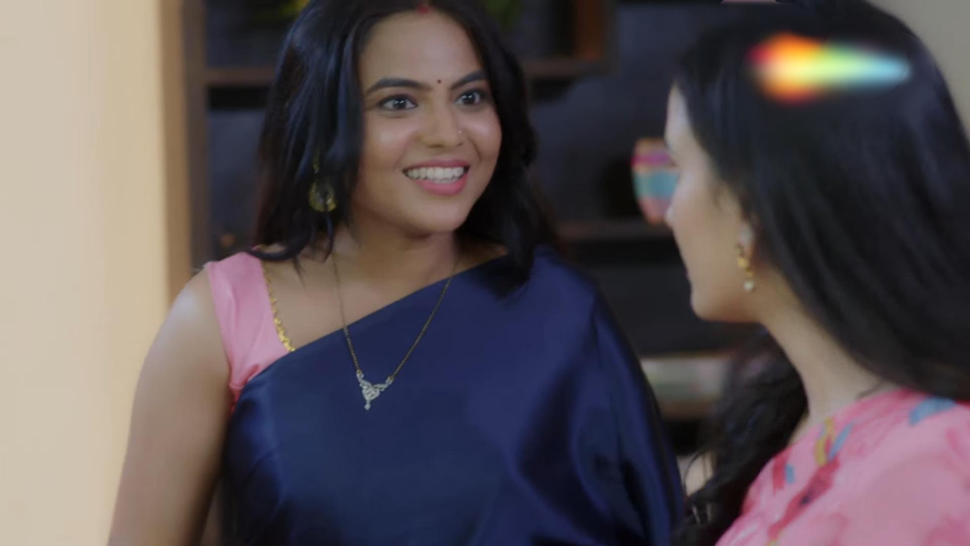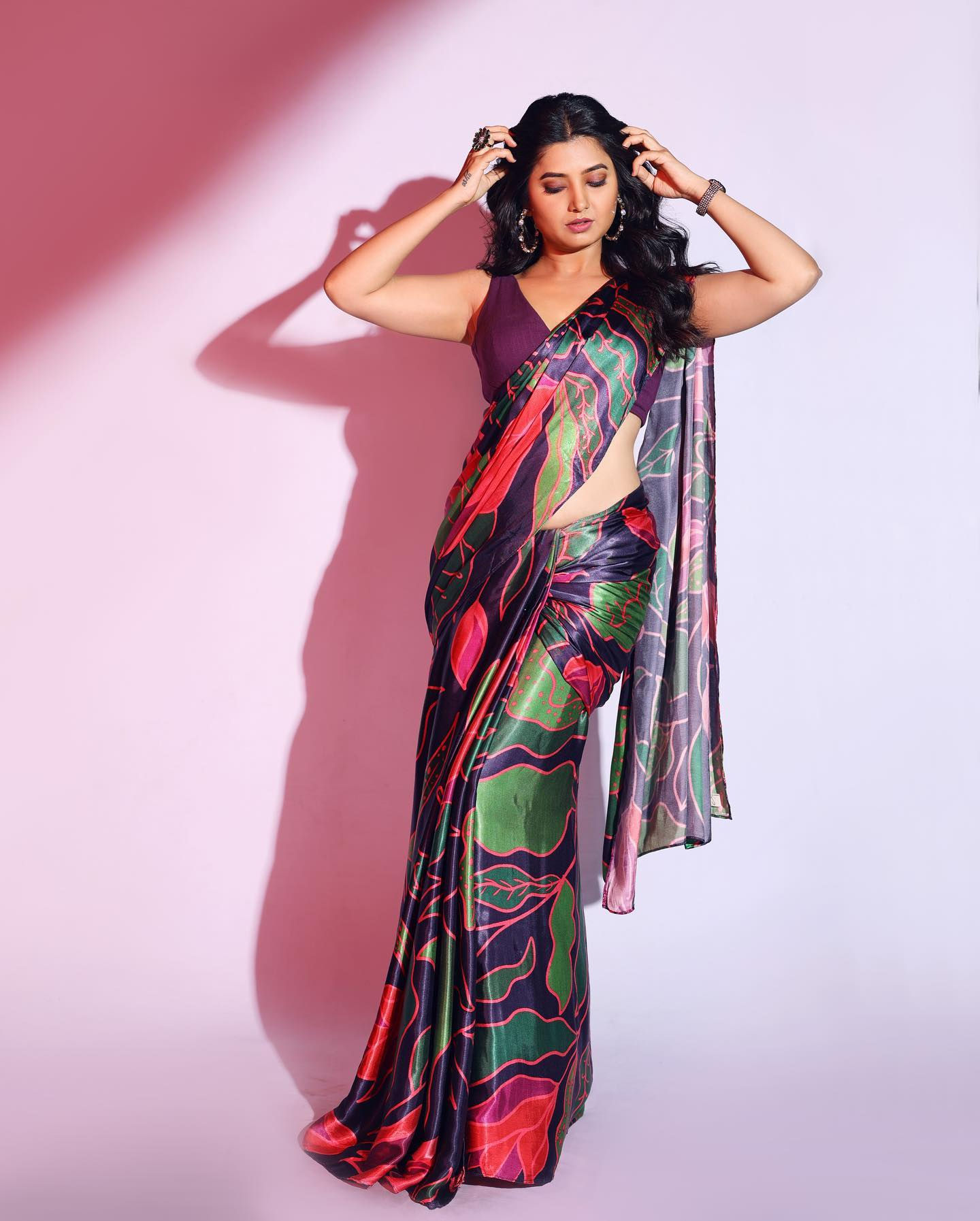 I like the boobs in satin saree