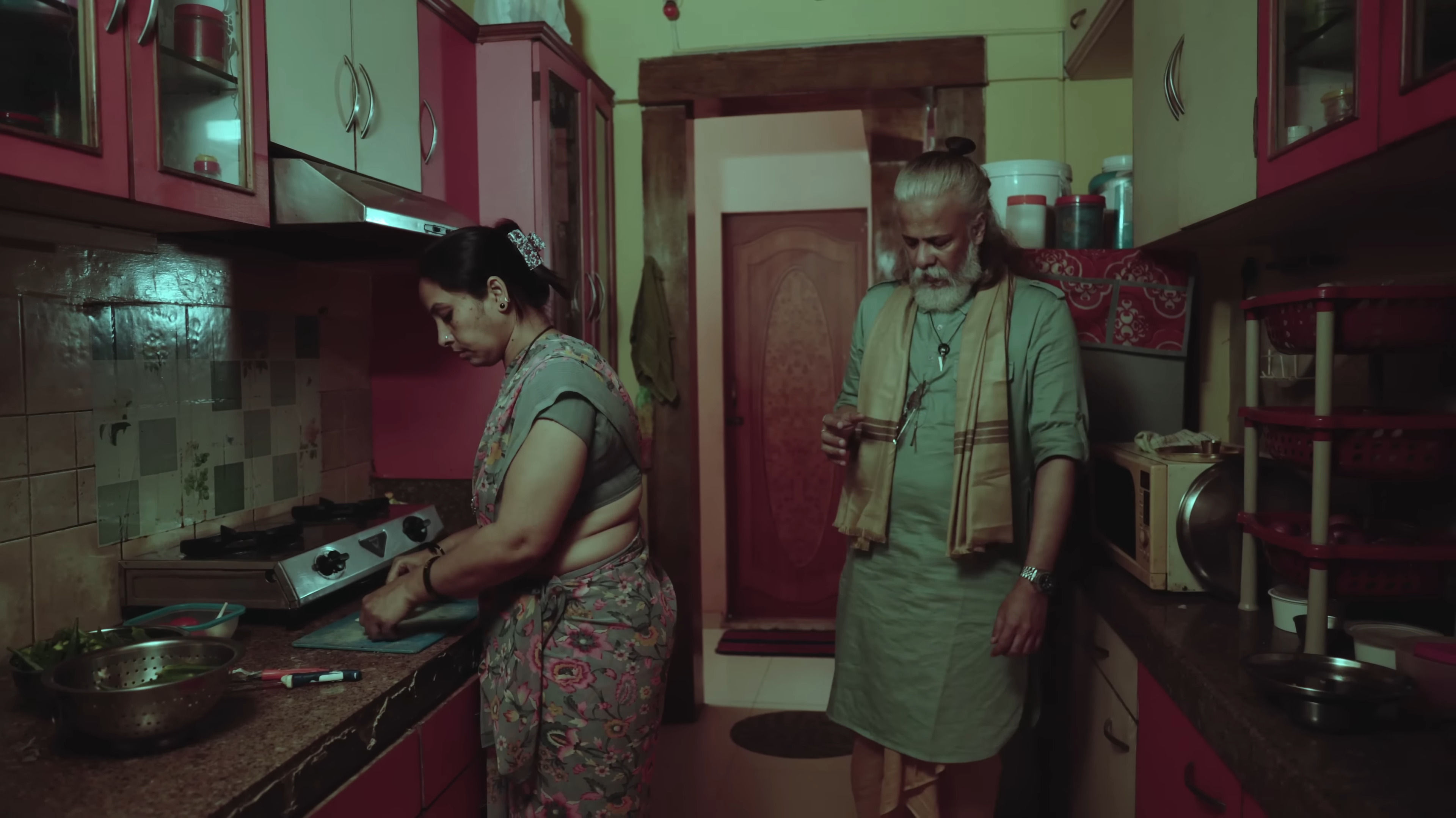Red satin saree