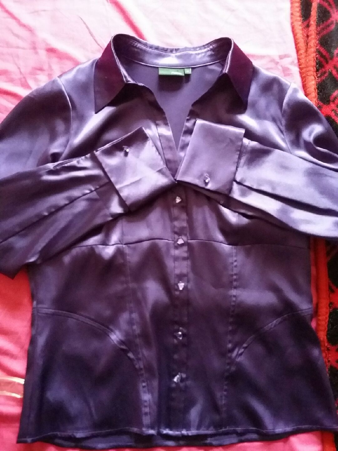 Lovely purple satin blouse that arrived today with wonderful french cuffs... so silky smooth! Brought in my wife's size as the other one i got for her appeared to go down well....!