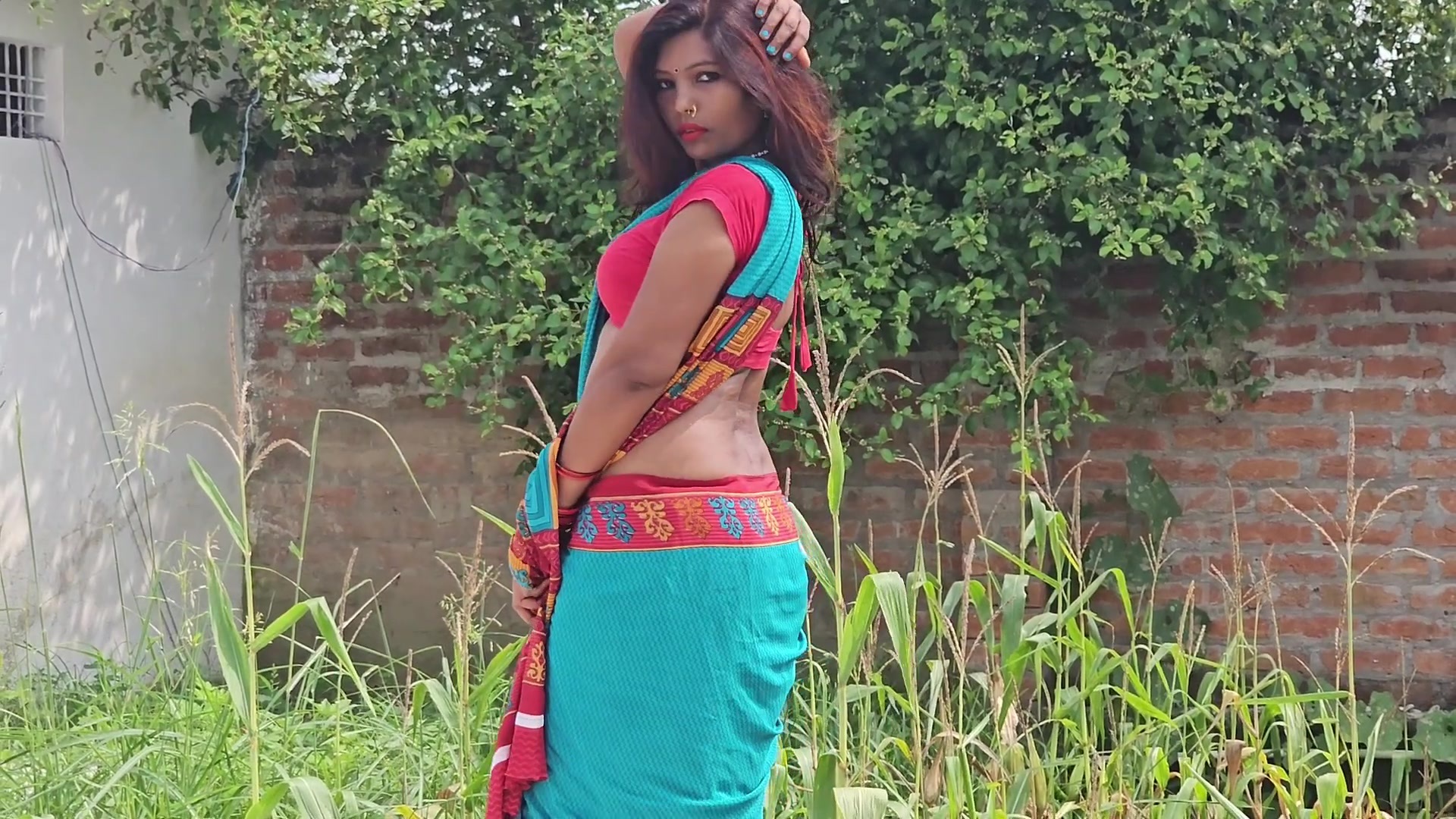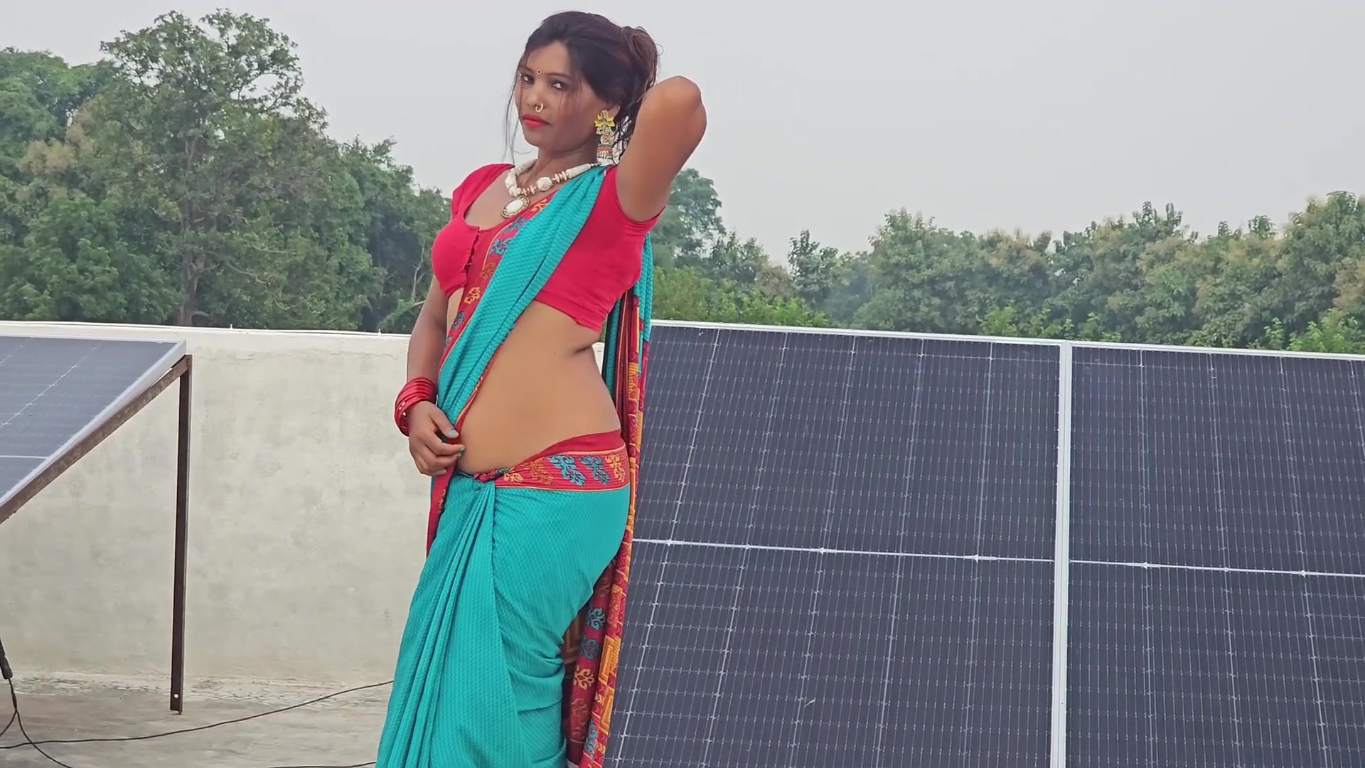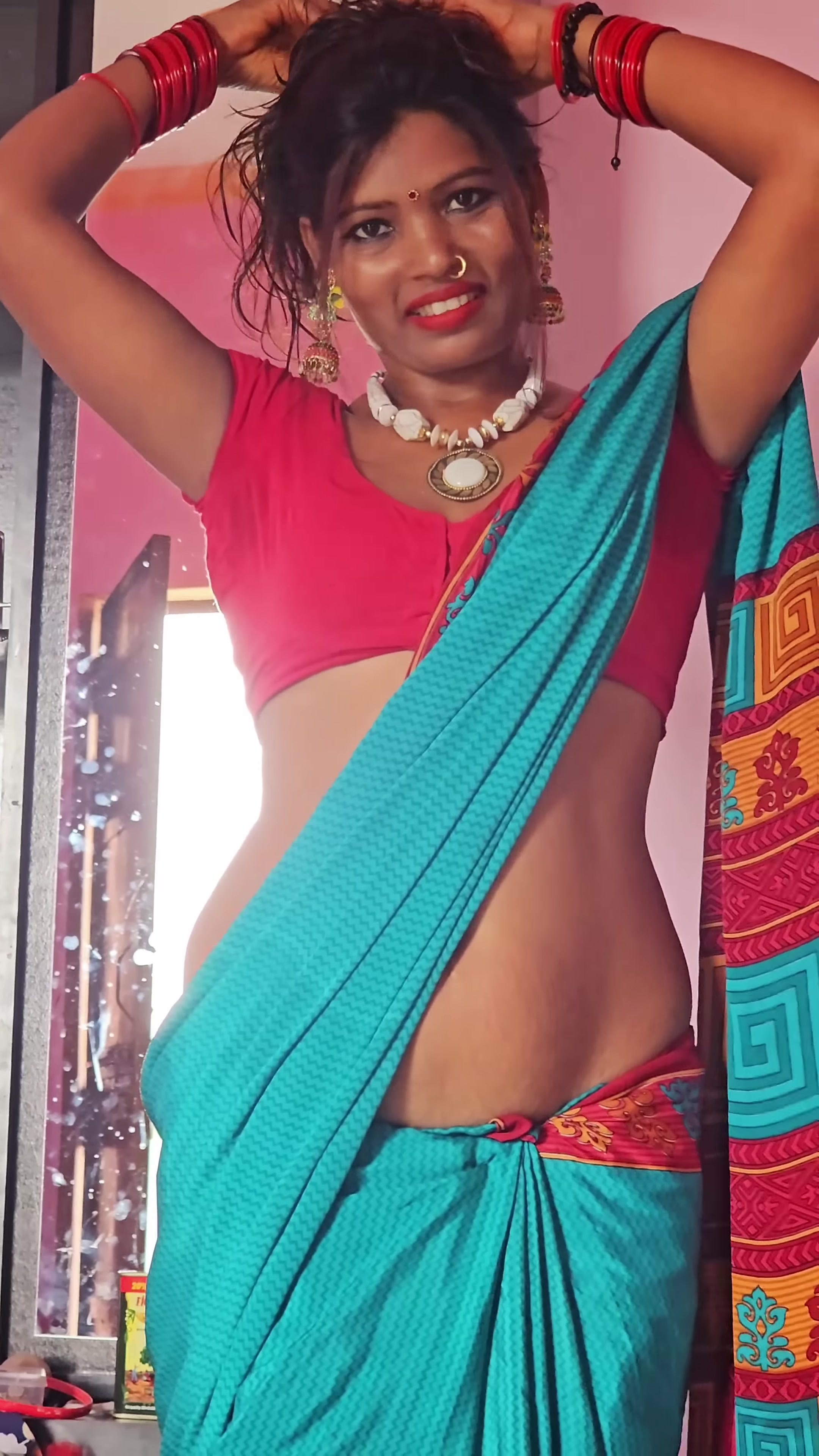 I like the boobs in satin saree