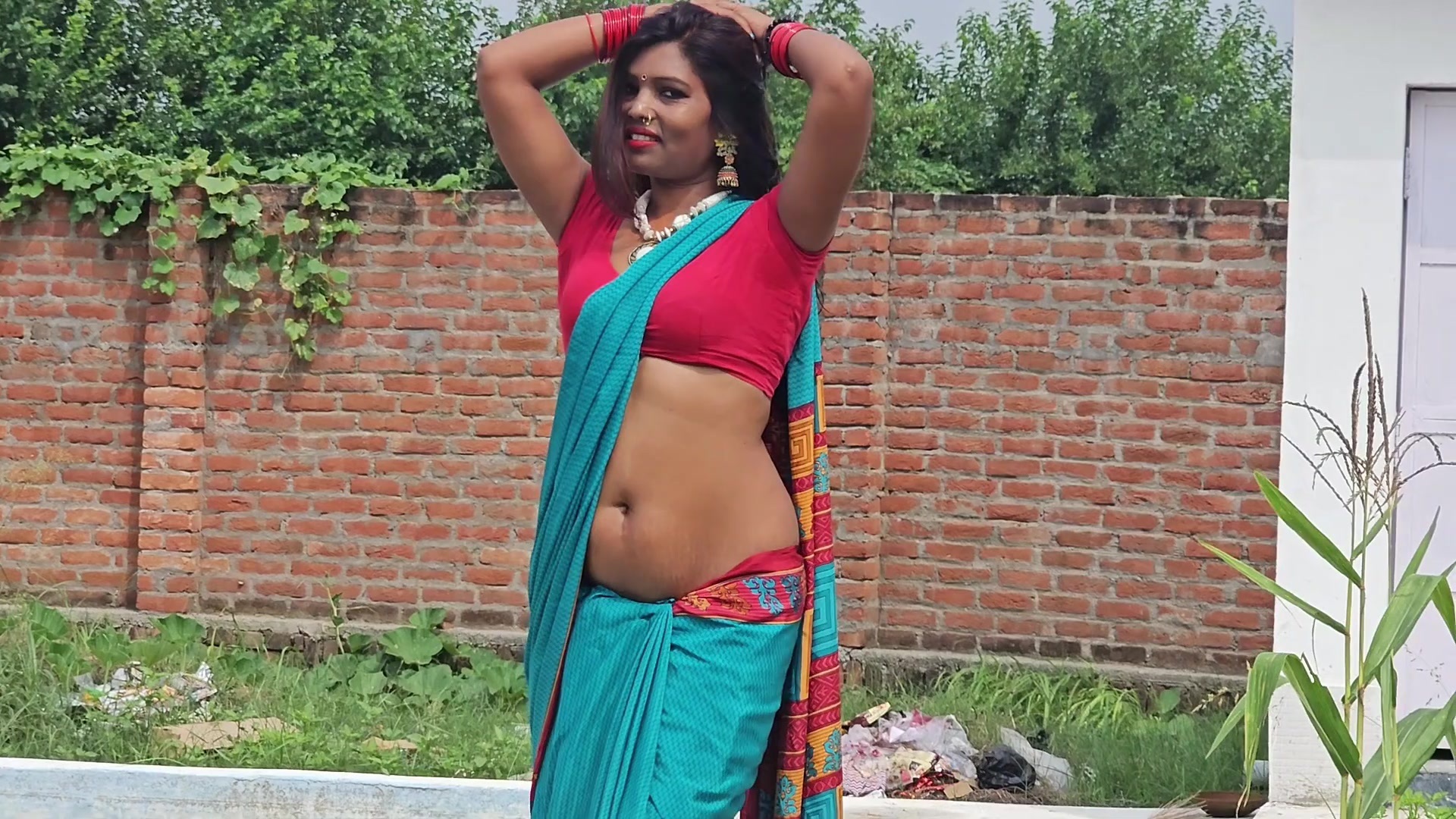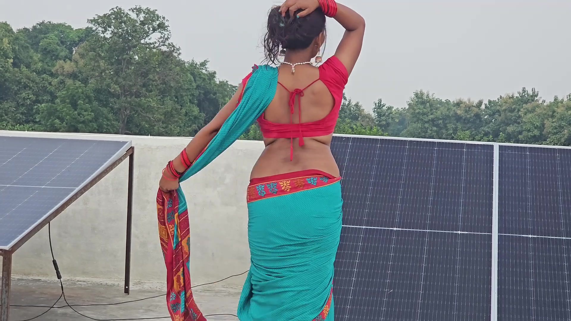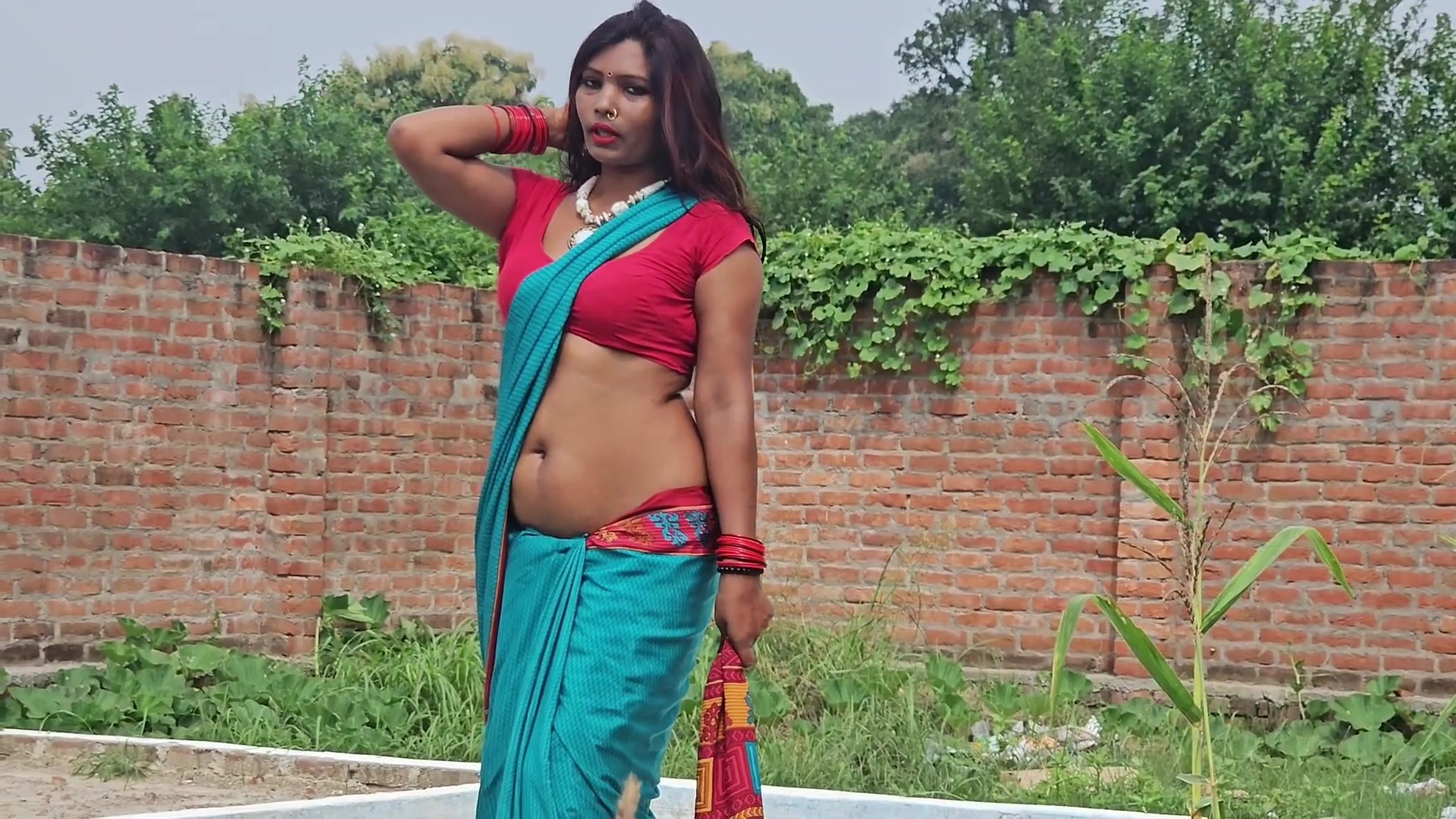 I like the boobs in satin saree