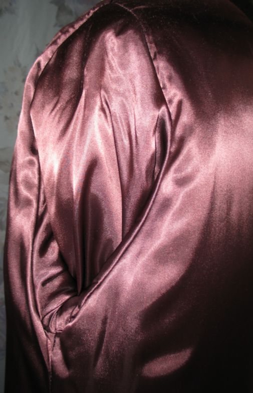 I won this coat on Ebay and just received it today. This was one of the pictures that was on Ebay. When I saw it I knew I had to have that beautiful brown satin in my collection. When I took it out of the box it was even more beautiful and silky than even the picture showed. I slowly stroked the sexy lining with my hand as I lay it on the bed, by then I was so hard that I couldn't wait any longer. I ripped my clothes off and slid my rock hard cock into the sleeve and it seemed like the satin wrapped itself tighter around my swollen shaft. Slowly I started slroking the silky satin sleeve. The feeling was like no other I had ever felt. This is what satin was made for.