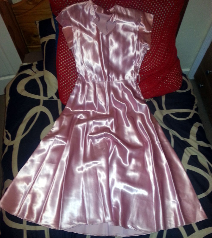 This is the dress I bagged for an absolute bargain price..it feels AMAZING!!!!satinmad62 wrote:Went to an antique fair today and spotted and bagged another beauty on one of the rails...A 1940's swing style dress in the most gorgeous pink slipper satin, proper vintage quality!!!...I picked it up and made my way to pay, and as is usually the case, it was a middle aged lady on the counter...so out came the stock statement "It's not for me" to which she replied "I've heard that one before" and then gave a little wink and a smile!!