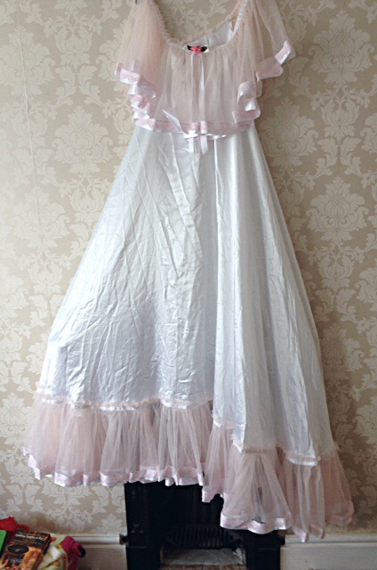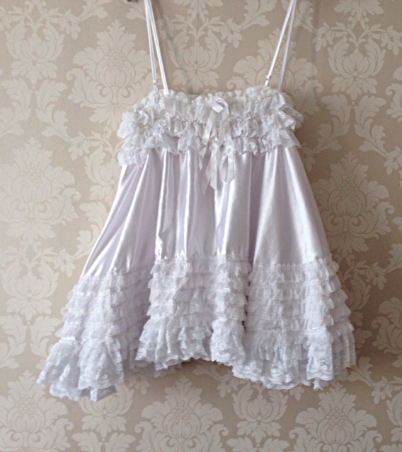 I am very lucky! Theirs not many women who would wear nighties of this size! She does have a petticoat underneath her nightie, just one which has many many layers. It just depends on which nightie I want on top. I will try and post some more pics.