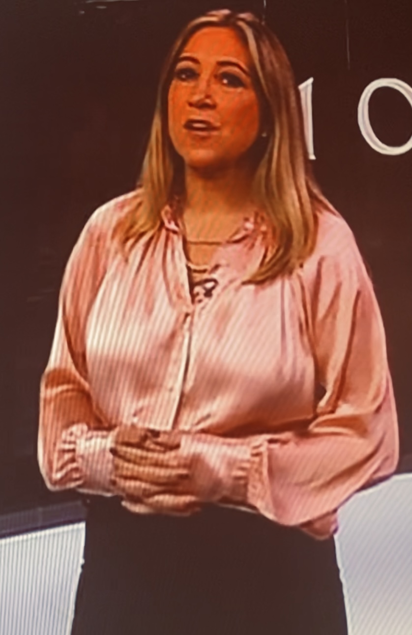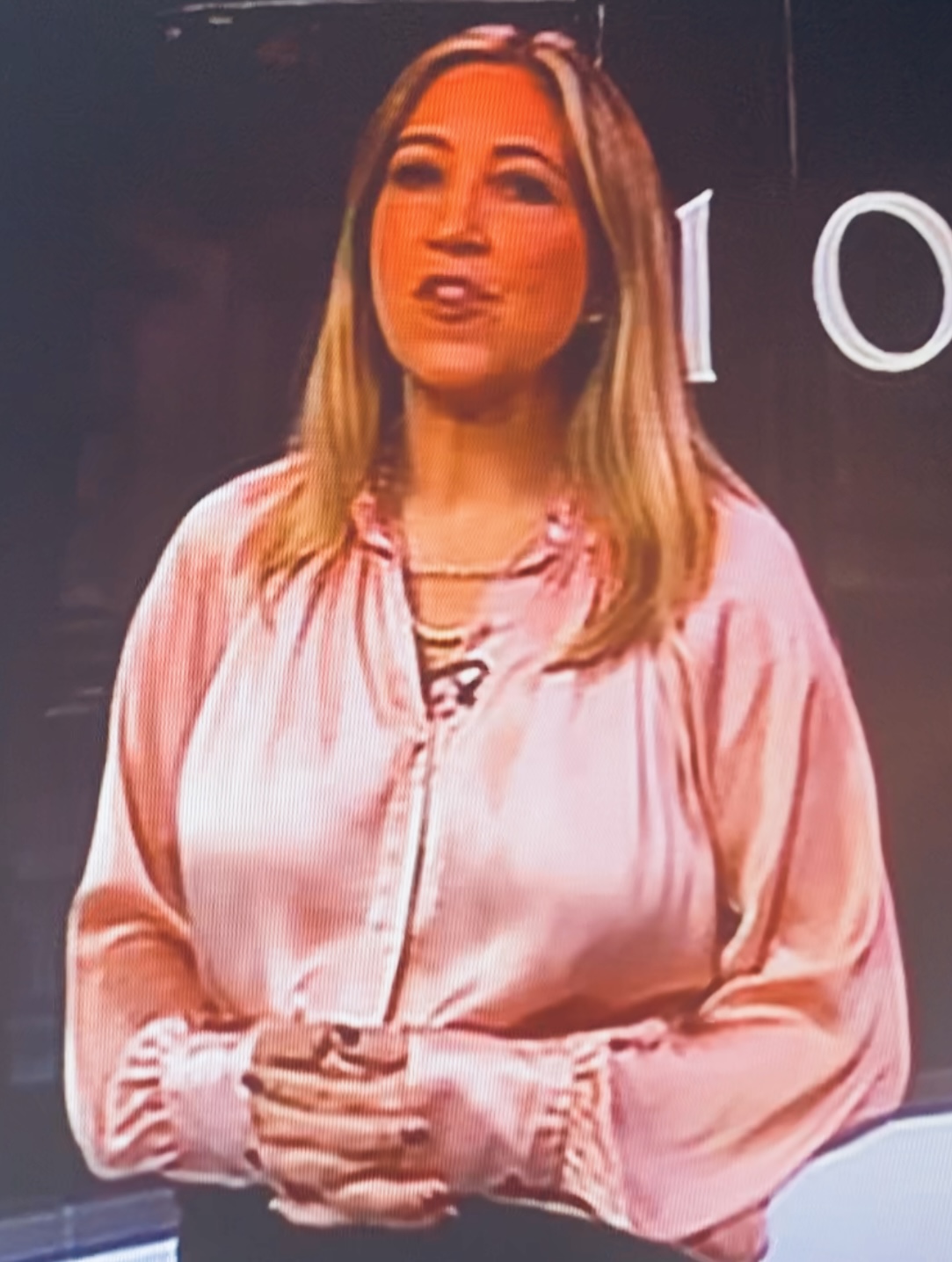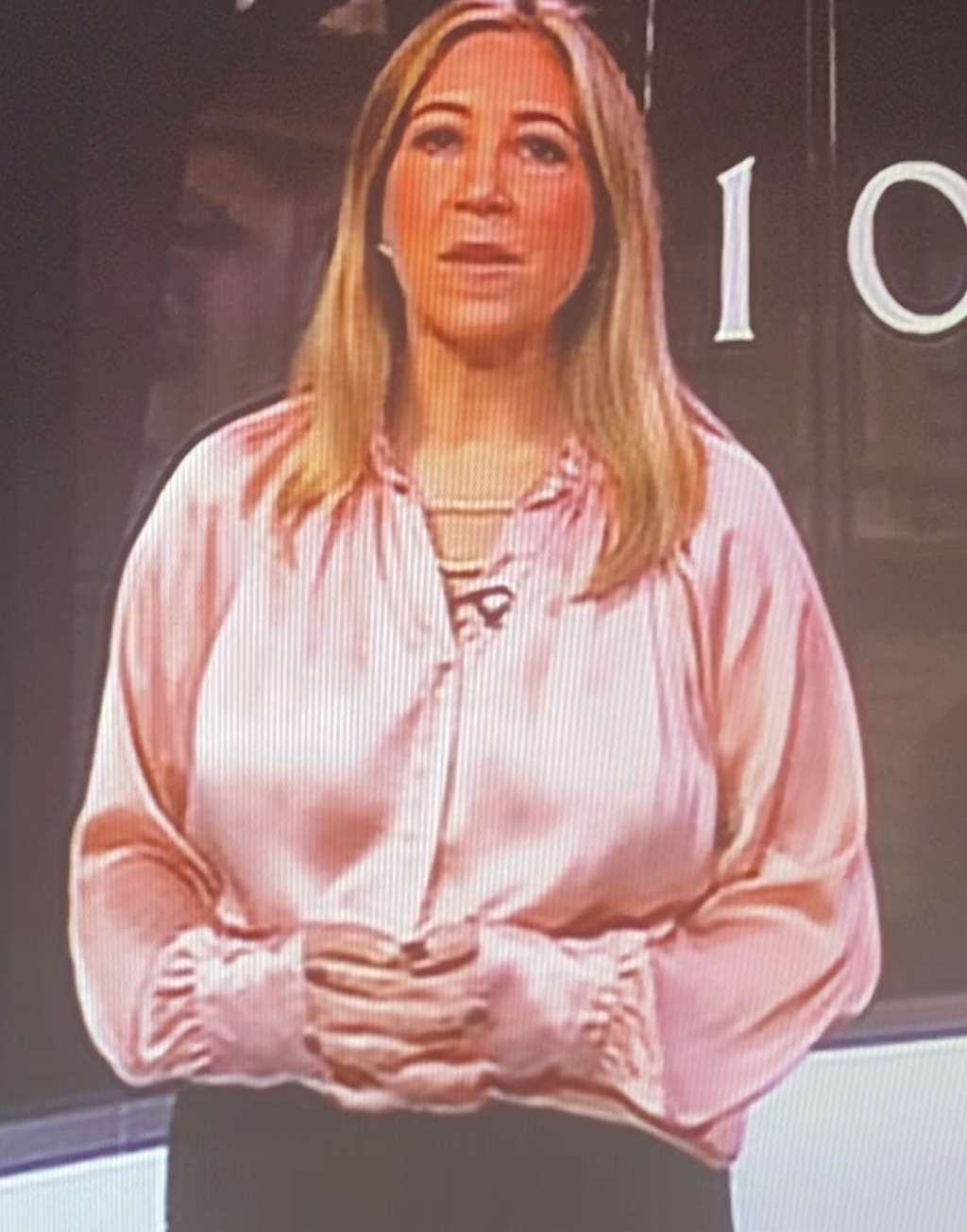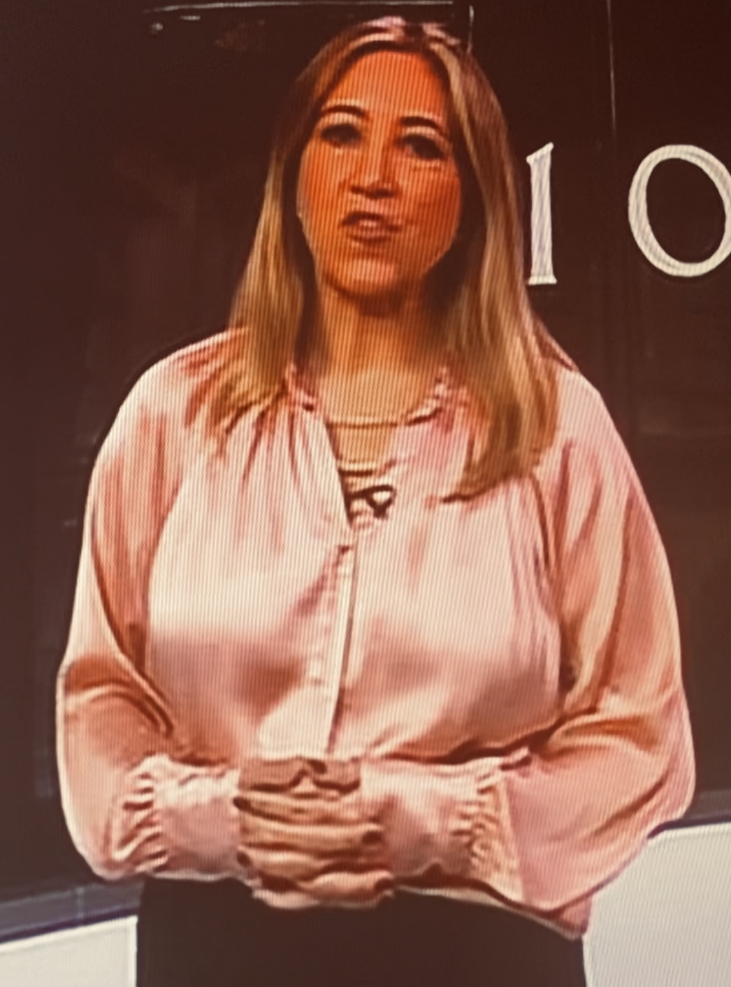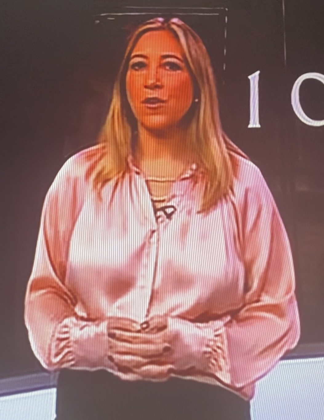Pink bbc satin news reader