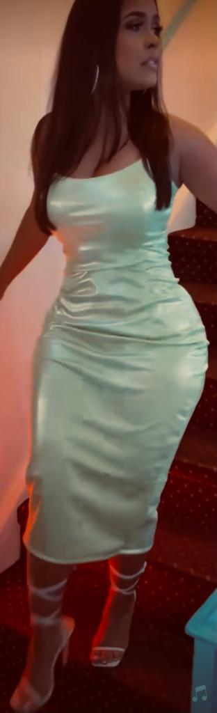 So shiny silky green satin babe