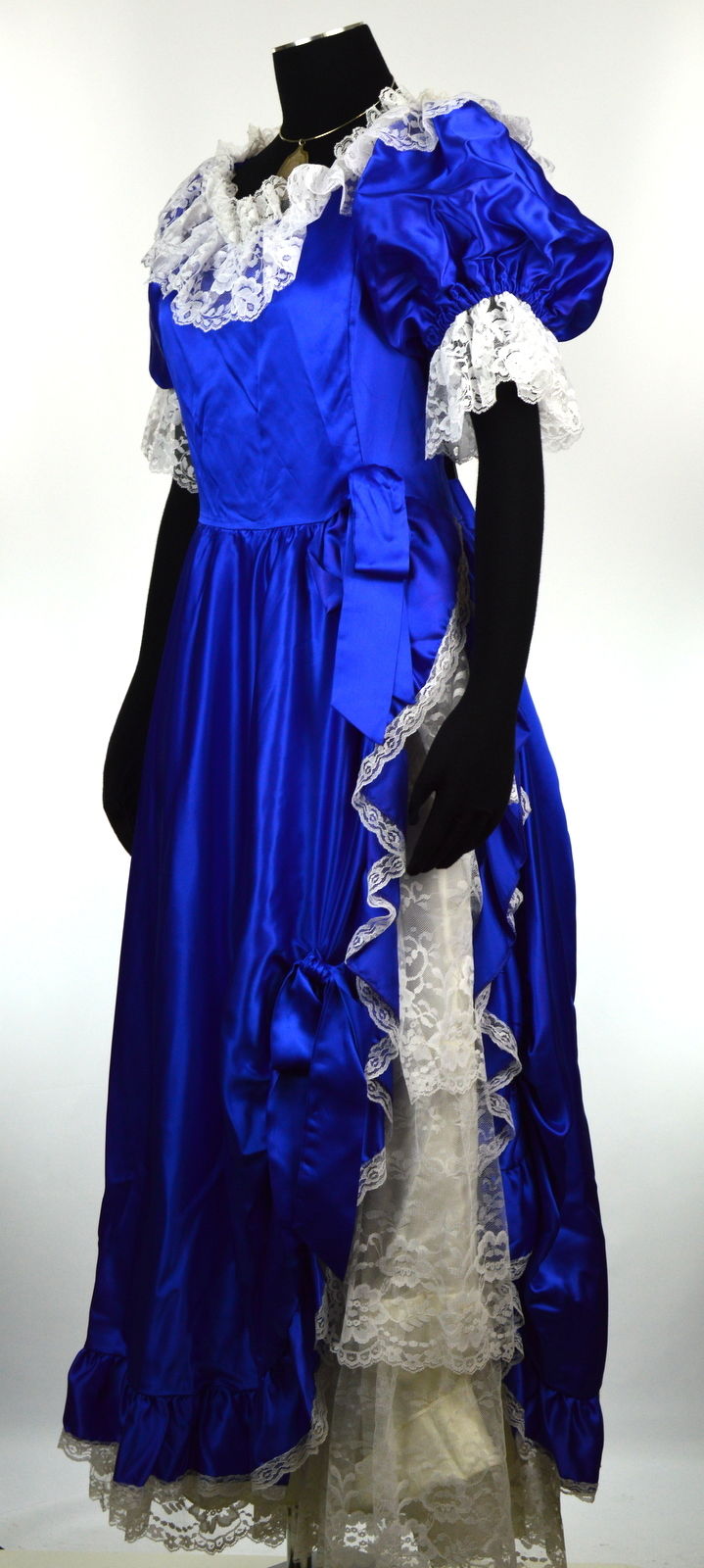Recent purchase, frilly southern belle style gown. Acetate satin, lots of lace, and in a nice large size...just my cup of tea :D This one's not going to get messed up, it is far too rare a breed.