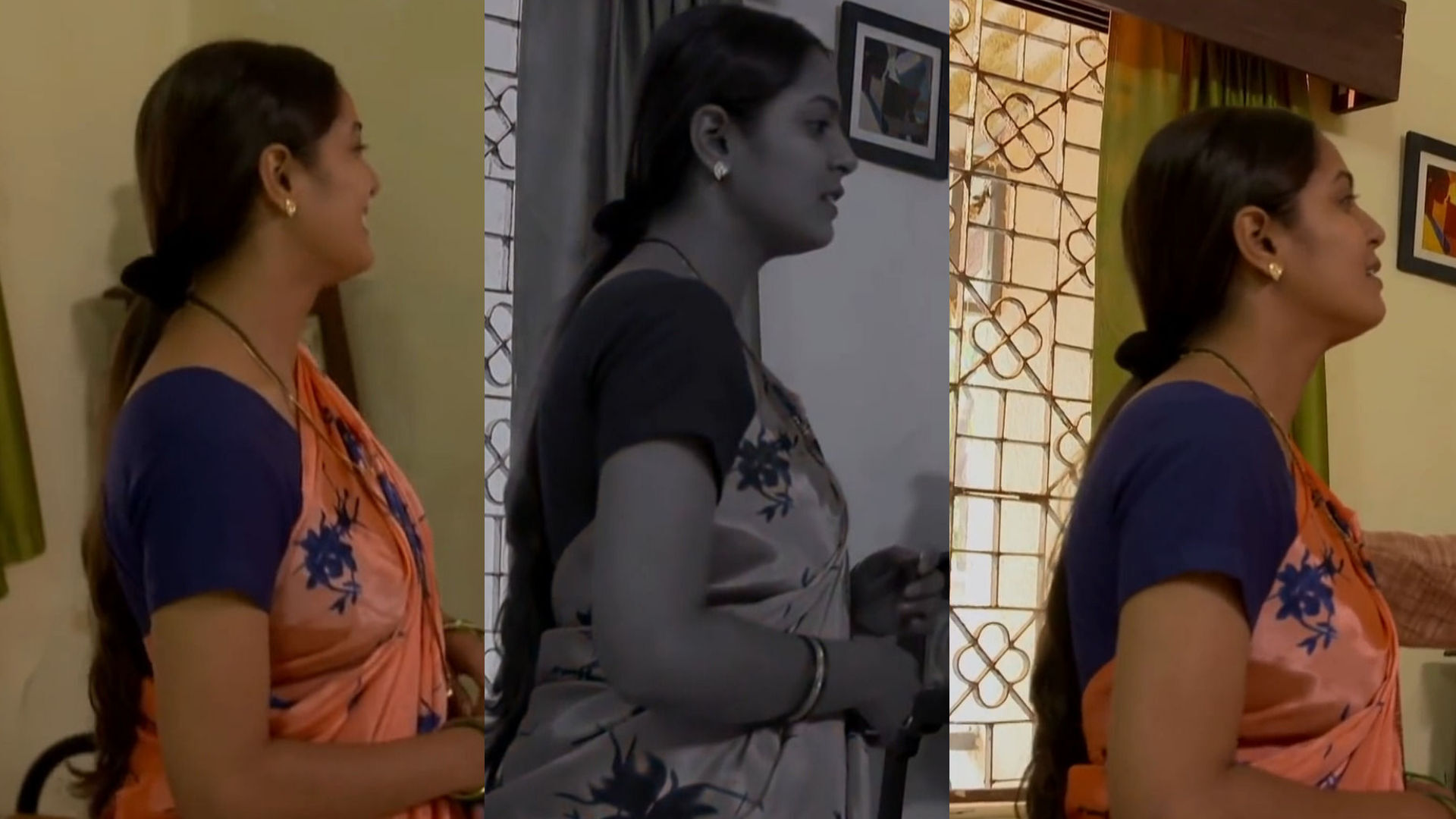 Silver satin saree