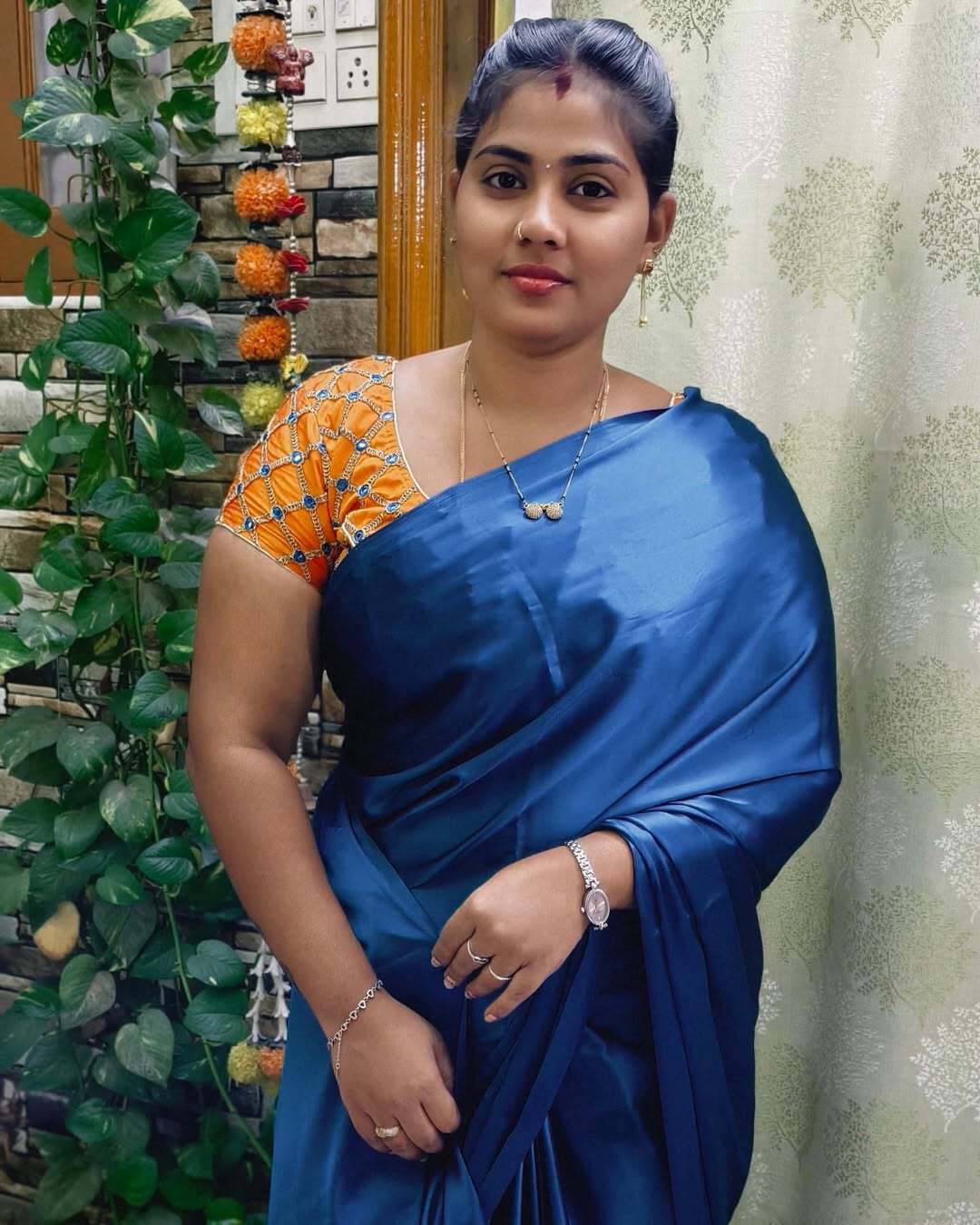 I like the boobs in satin saree