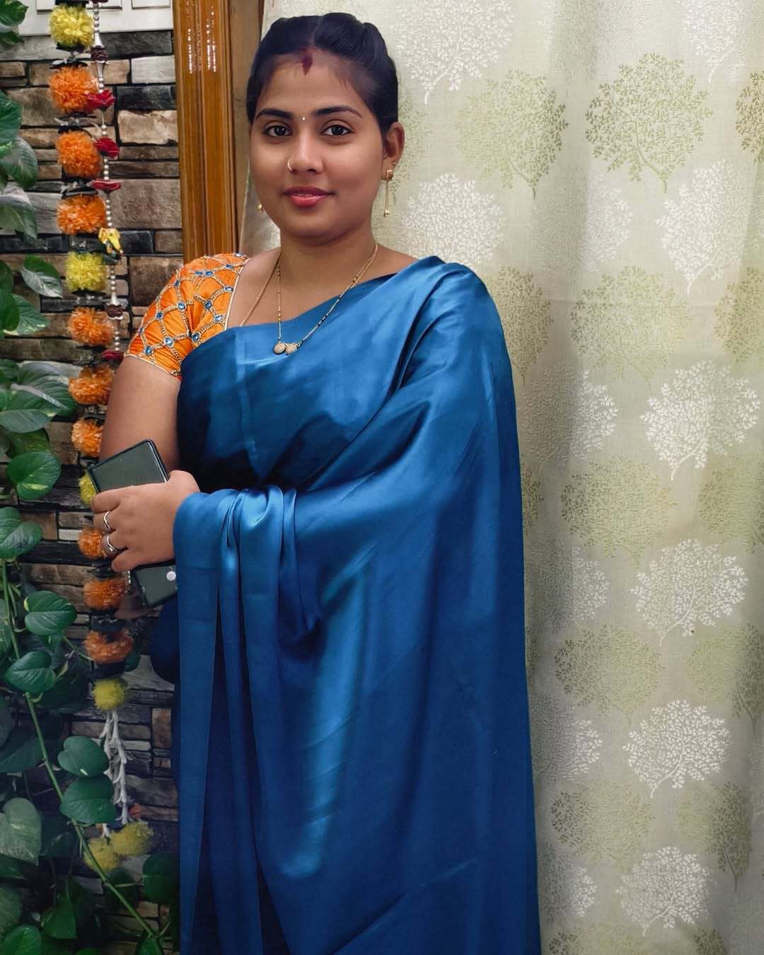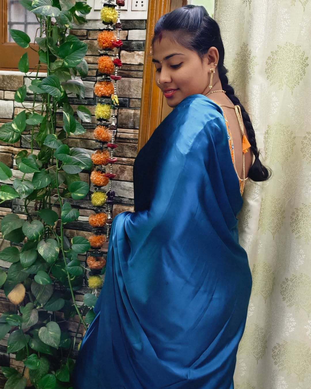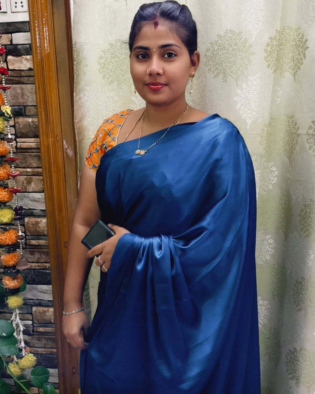 Blue satin saree