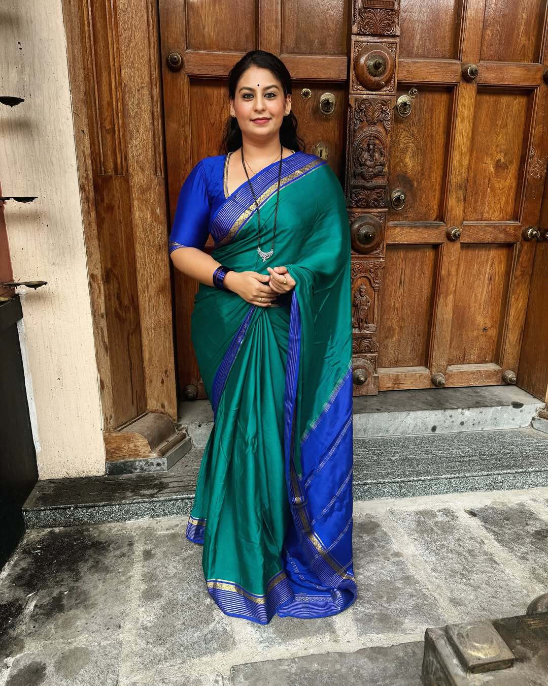 Green satin saree