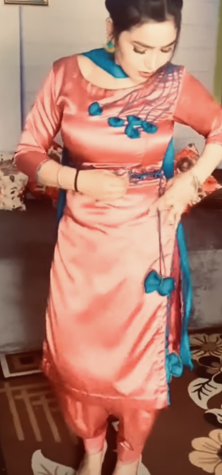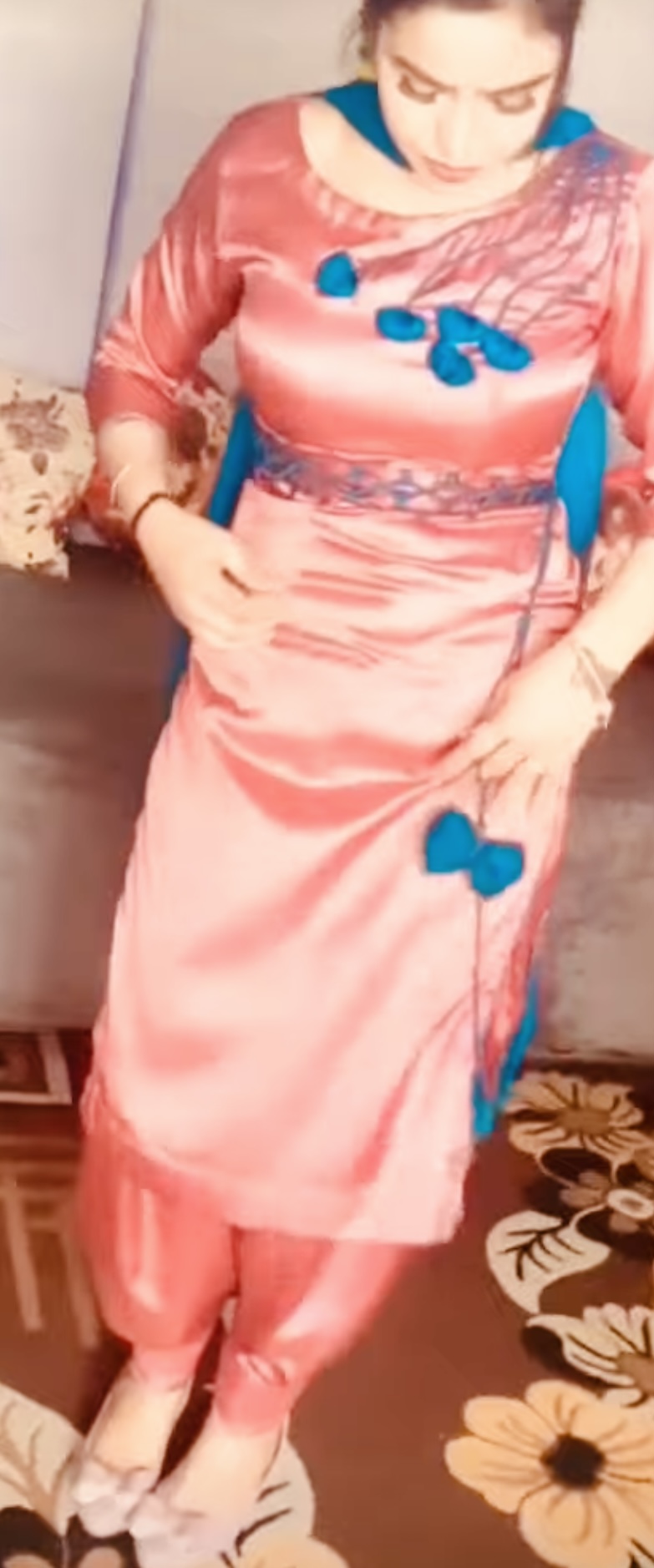 Pink satin salwar