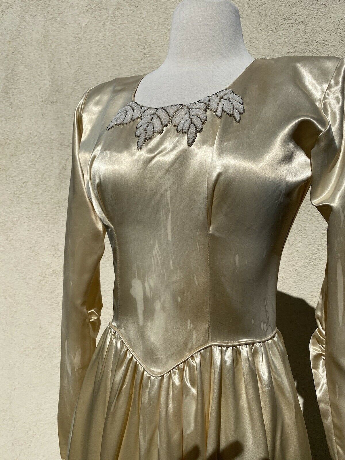 Saw this beautiful satin wedding gown on Ebay and upon closer inspection it looks like someone has already shot several loads on it.