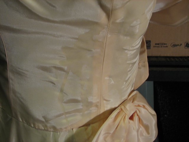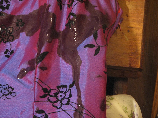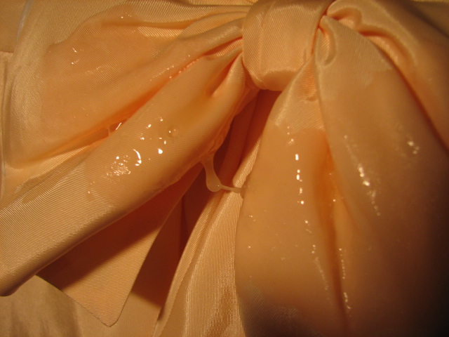 Vintage acetate bridesmaids/wedding dress with the first of many nasty cum stains ruining what once was a pretty, smooth, soft dress. I came on this dress soooo hard, the cum soaked through the layers to the inside of the bodice :lol: I think the rest of the dress needs to look like the bust !! When it's CUMpletly covered with nasty cum stains, I'm gonna......... :twisted: :twisted: