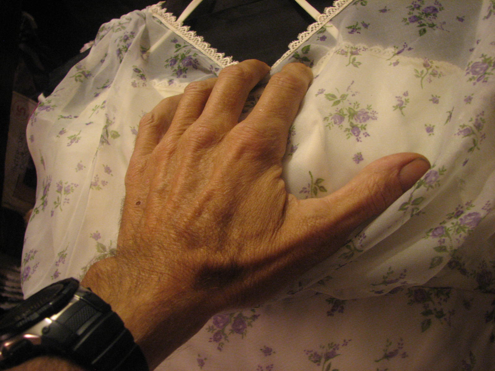 The second dress is polyester with a polyester lining. A very simple but pretty dress...soft and flowy like a country girl would wear. I want to violate it so bad :twisted: :twisted: For as simple as it is, the combination of materials turned me on big time. As I was feeling it before taking it out of the package, my cock was ready to slide right onto it :D When I heard the silky rustle it made as it unfolded, I had all I could do to not blow a load onto it. I had company the day this dress arrived and I had it in a closet in my bathroom. I went in to take a piss and introduced my cock to the dress :lol: As I was getting hard, a little piss dribbled on the white lining (oops !!) and pretty soon some pre-cum was running down the front. I had to stop there !!! Out of all the dresses I have, for some reason, this one really gets me going !! I just wish cum would show up on it because it's gonna get well used !!!