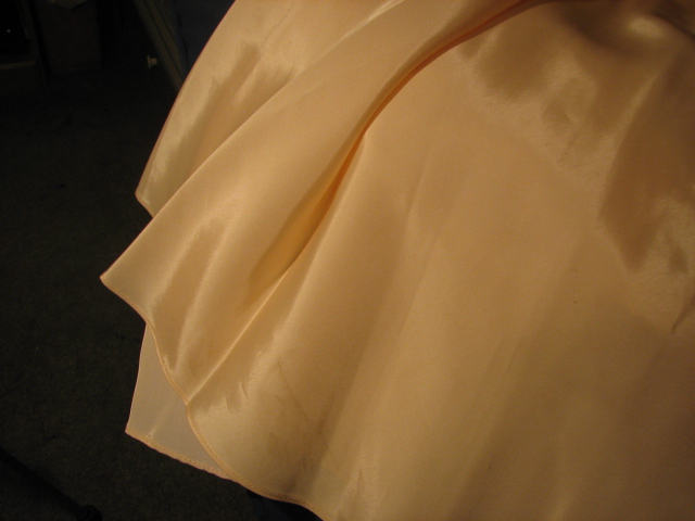 Not sure what this ugly wedding dress is made of, but it feels real smooth and makes a sweet sound as my cock slides all over it. I think it's acetate. When I seen the sellers pics of this dress, I knew all it was good for was drench it in cum and maybe a few dribbles of pee when I'm done cumming on it on it, since I don't think anybody would actually want to wear it, except to wreck it :twisted: :twisted: