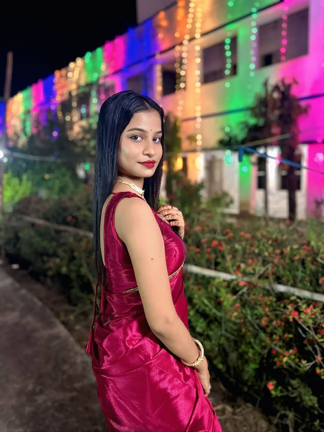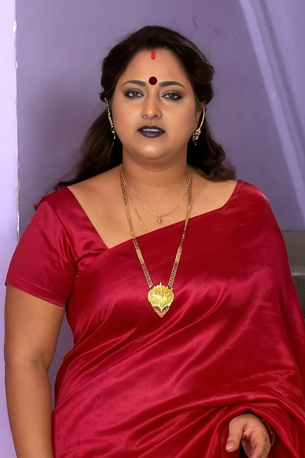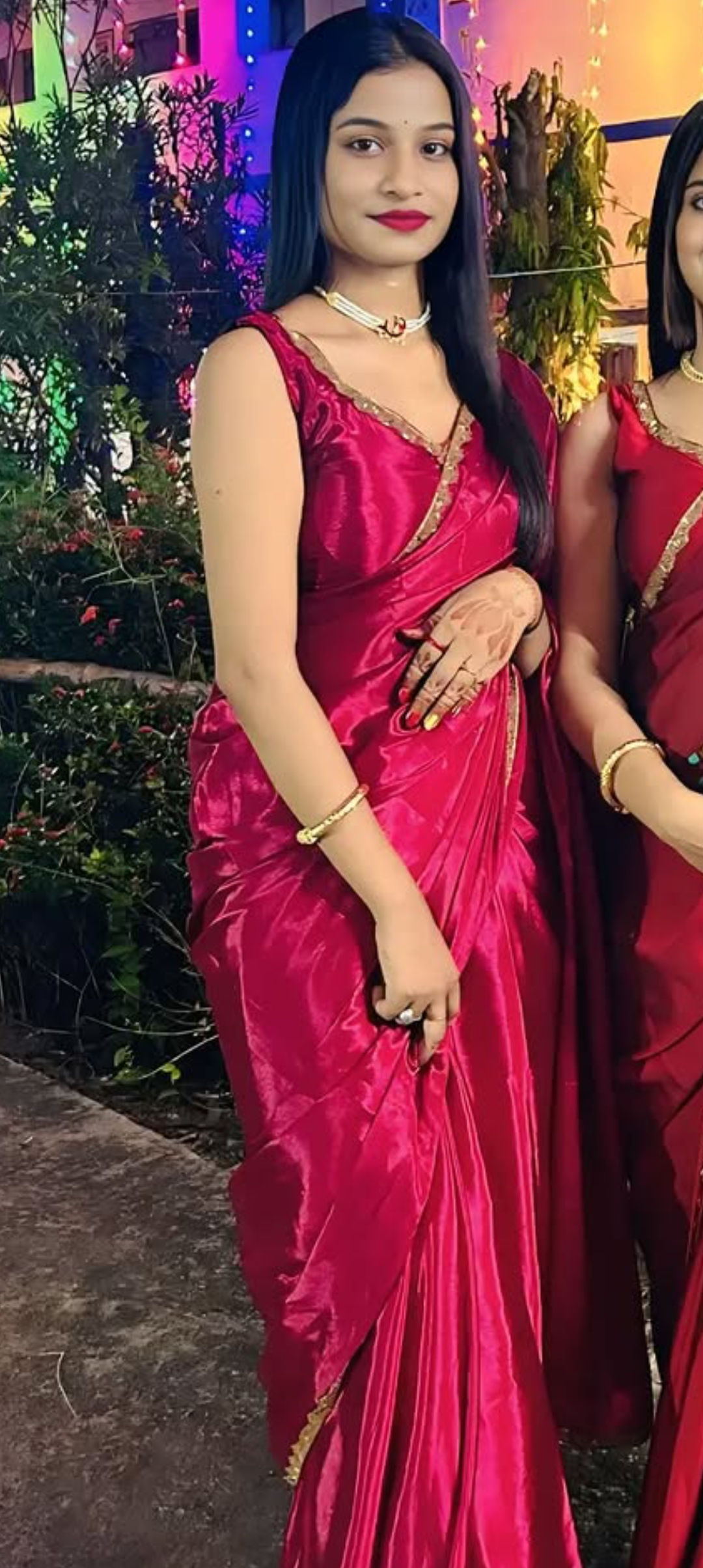 Red satin saree