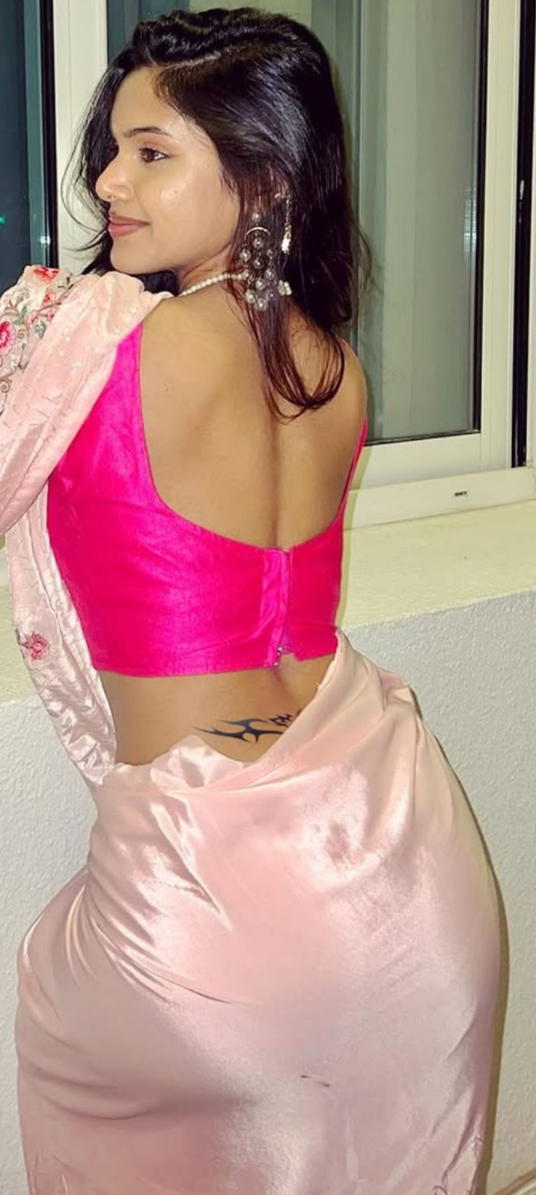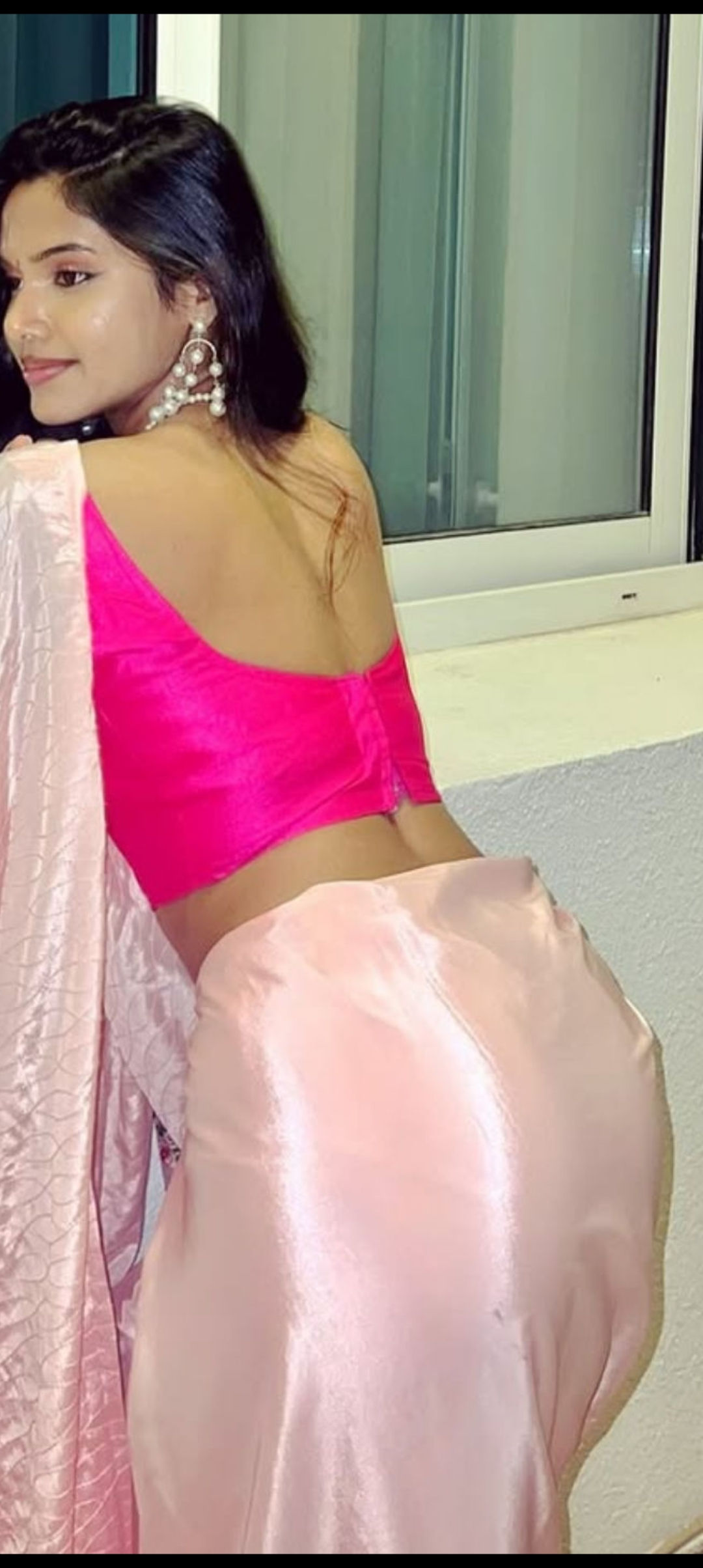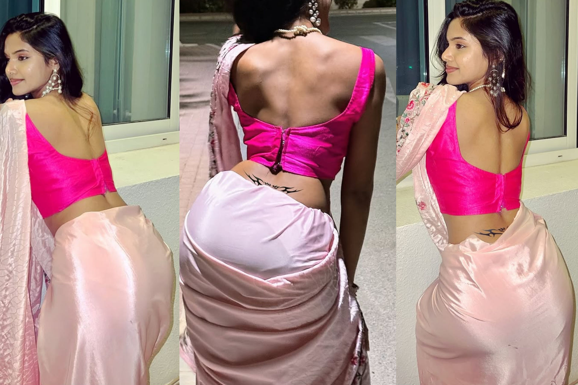 Pink satin saree