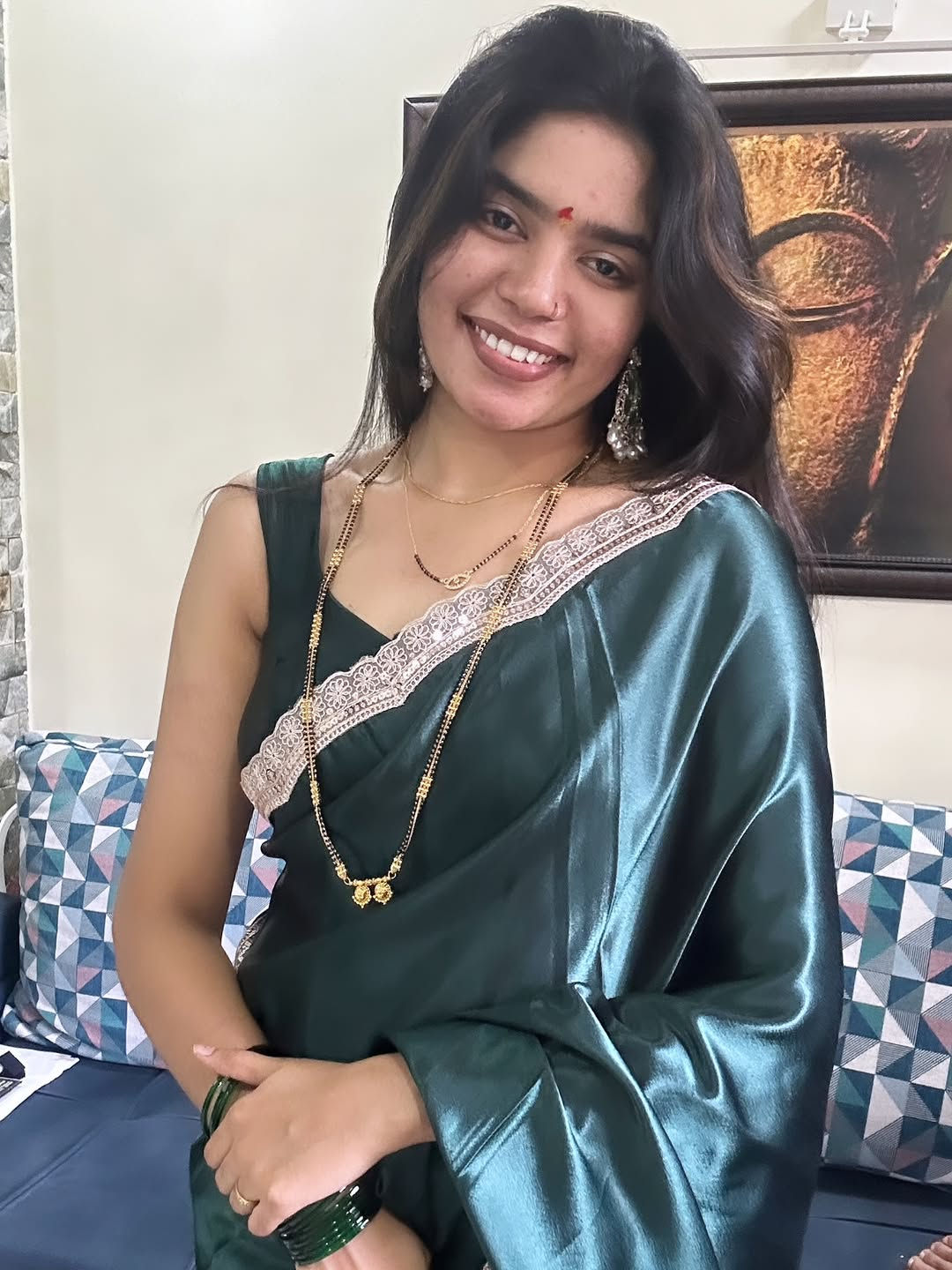 Green satin saree