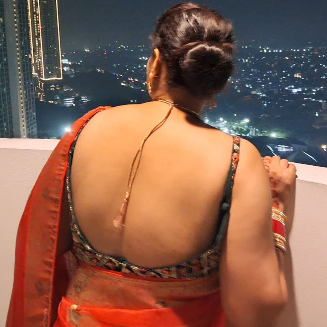 I like the boobs in satin saree