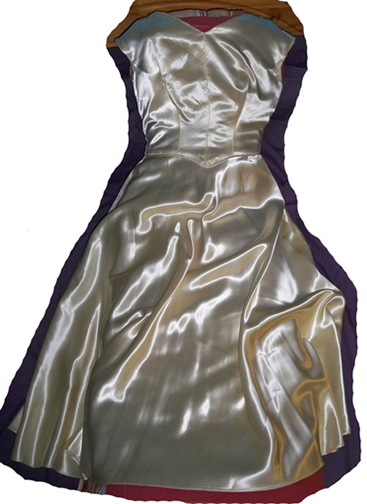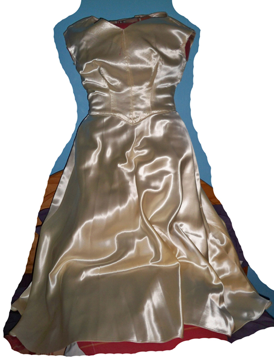 Welcome to the forum. That looks like a great 40's rayon satin gown. It's the best satin out there, you're right they don't make that type of satin anymore. I did the same thing with a bridal gown by removing the lace on the top, more satin to hold.