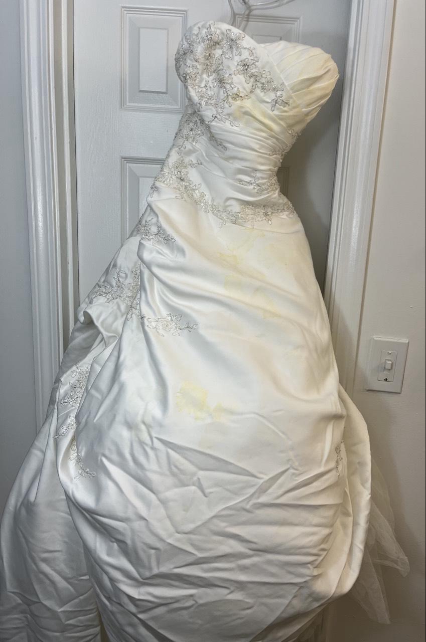 Here’s one that I’ve definitely had a lot of fun cumming both all over and while wearing though. This is Lindsey’s wedding dress. I paid a little more than I wanted to for this dress but when I heard the story about it I knew I had to buy it. Lindsey was in one of those wedding reality tv shows, competing against other brides to have the best wedding day. When I saw that, I just knew I had to shoot loads all over her dress. Her dress is amazing. Super fluffy, it’s a bit of a hassle to move around in but means it’s comfortable to wear and has plenty of soft fabric to cum in.
