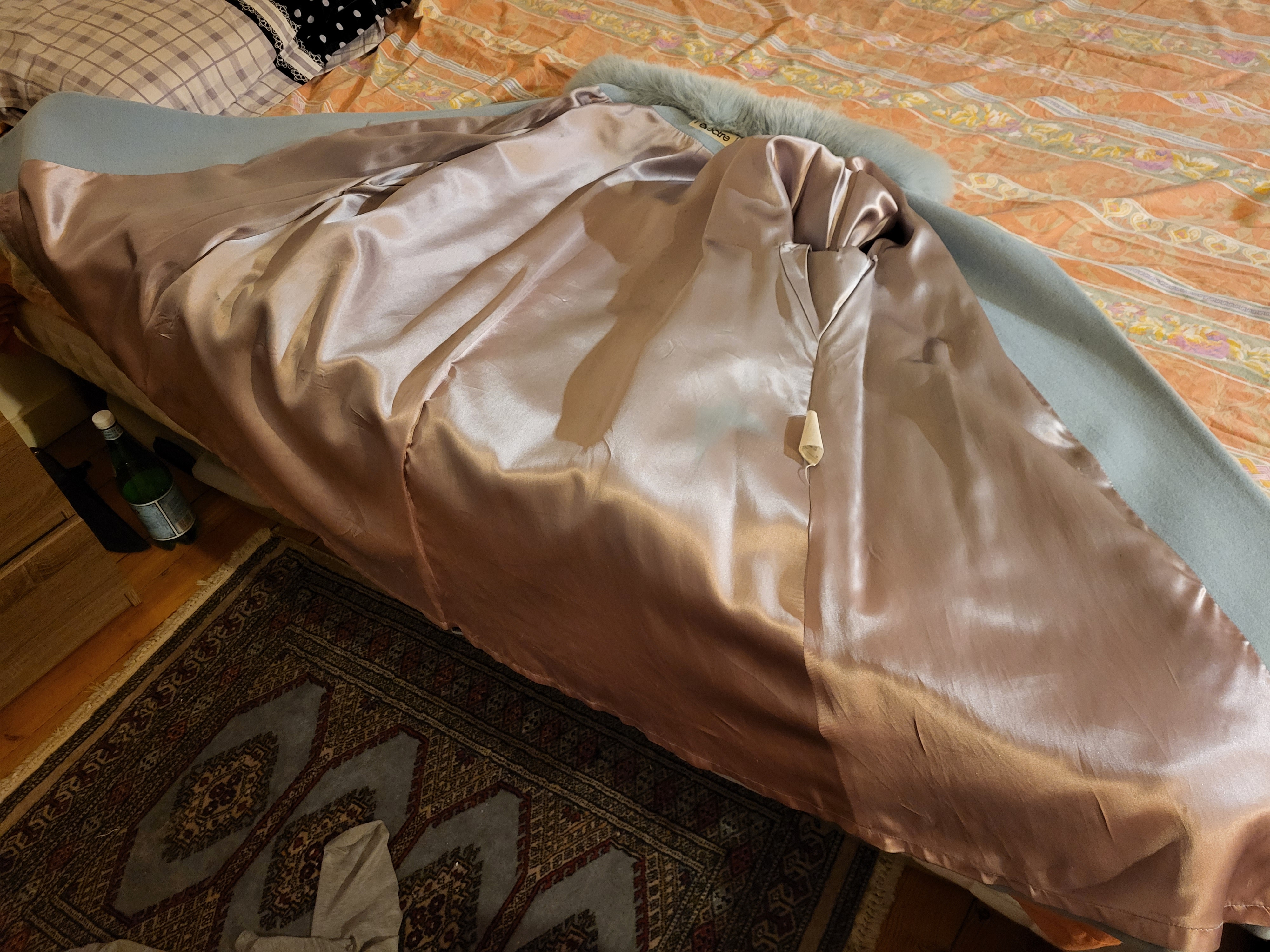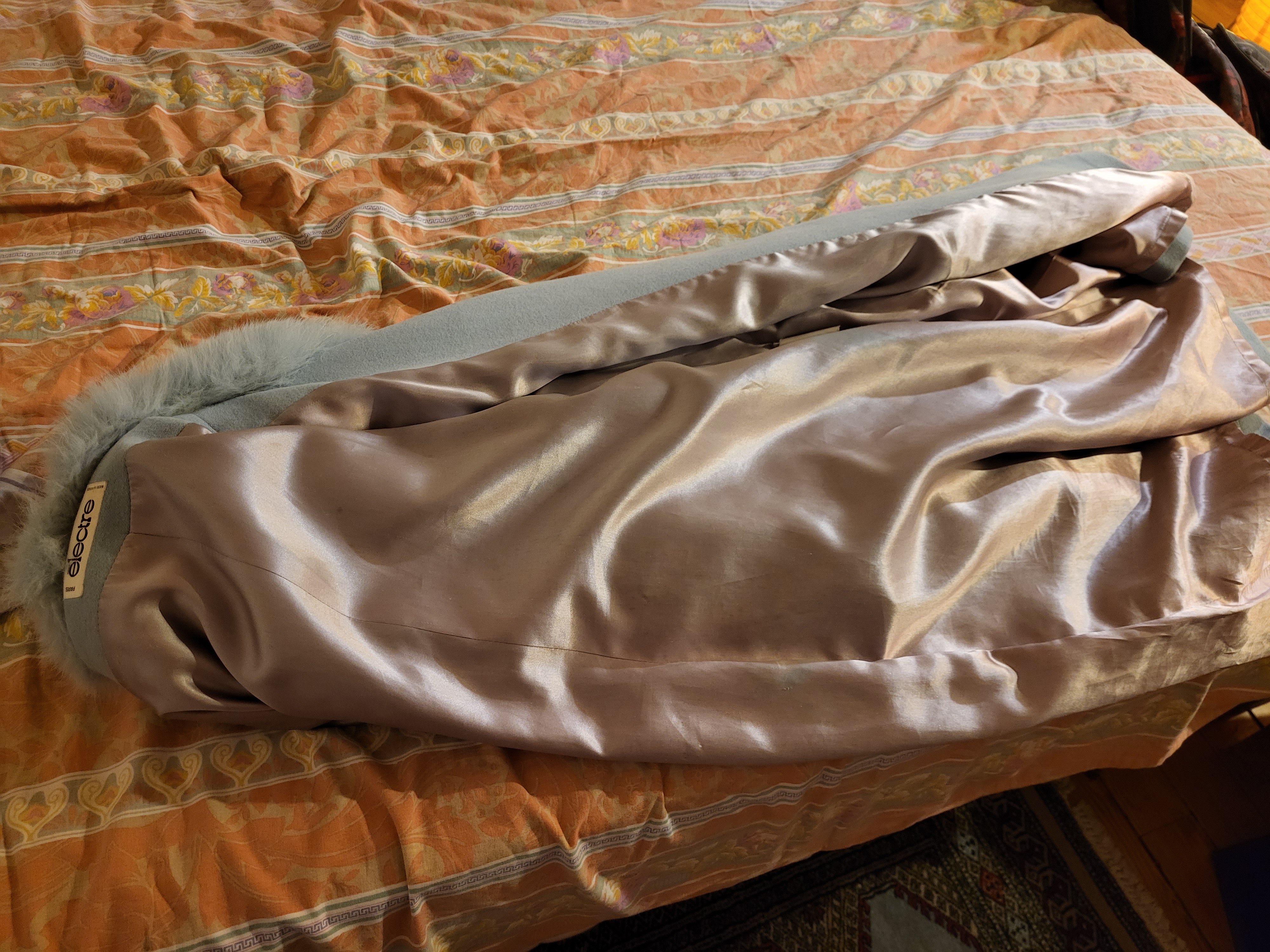 Hi everyone, our neighbor went on vacation and asked me to take care of her cat. I do it with the greatest pleasure, especially since I know that she has an Electre brand coat that has a beautiful satin lining. as you can see, I take care of her cat for 10 minutes a day and her coat for 2 hours and with the greatest pleasure...