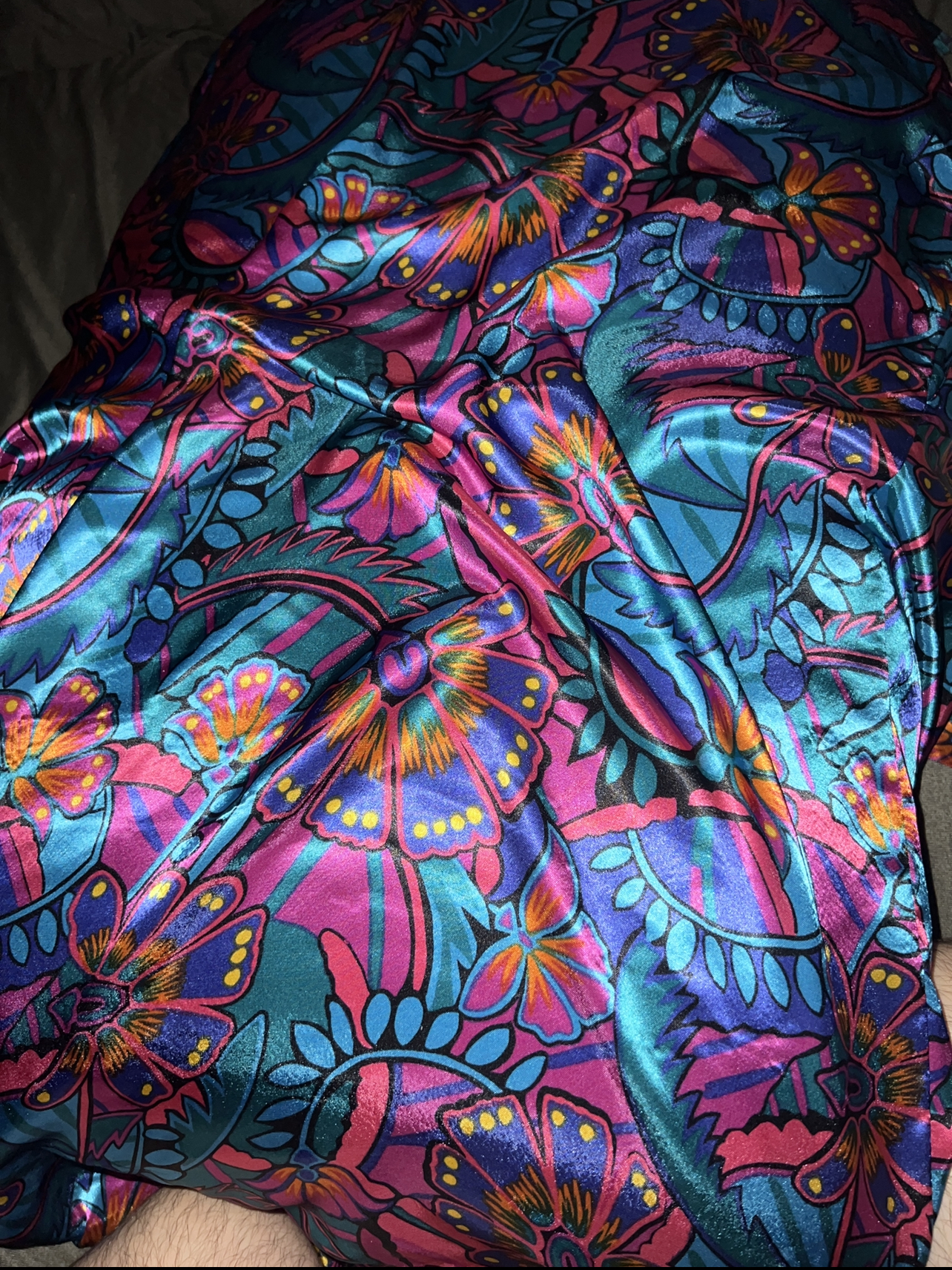 I’m currently wearing a black Ruby Rox satin dress and I’m about to ride my pillow with this Erika Taylor floral satin robe. Just gave the robe a wash after about a month of it being on this same pillow taking load after load. Quite possibly one of the slipperiest pieces I own. I can’t get enough of it. I recommend everyone in this community have an Erika Taylor on hand.
