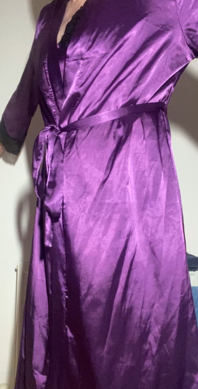 Not wearing this right now but slipped into this satin nightie and robe last night.