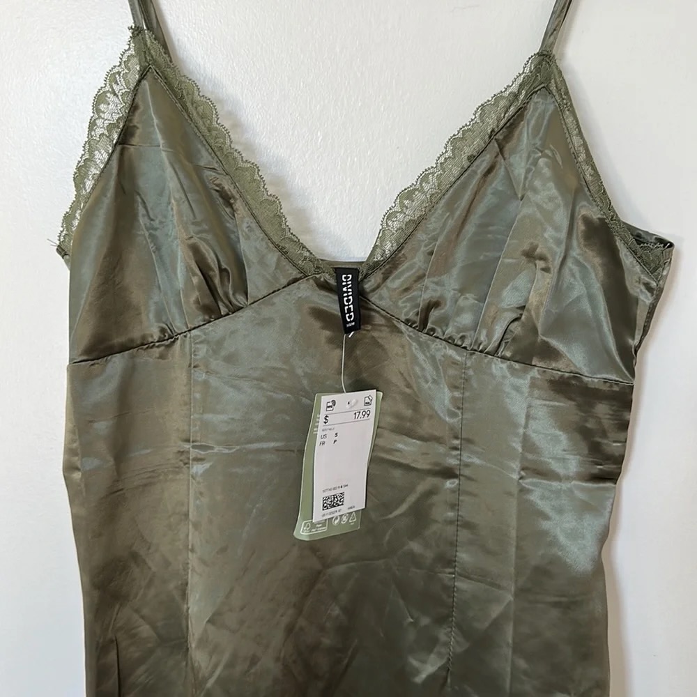 I know I'm late to the party, but I have the khaki version of this H&M dress, and it is indeed the smoothest in my pretty large collection! I wouldn't say that it's the shiniest, but it has a special kind of shine. At certain angles, the fabric catches the light and glitter quite a bit!