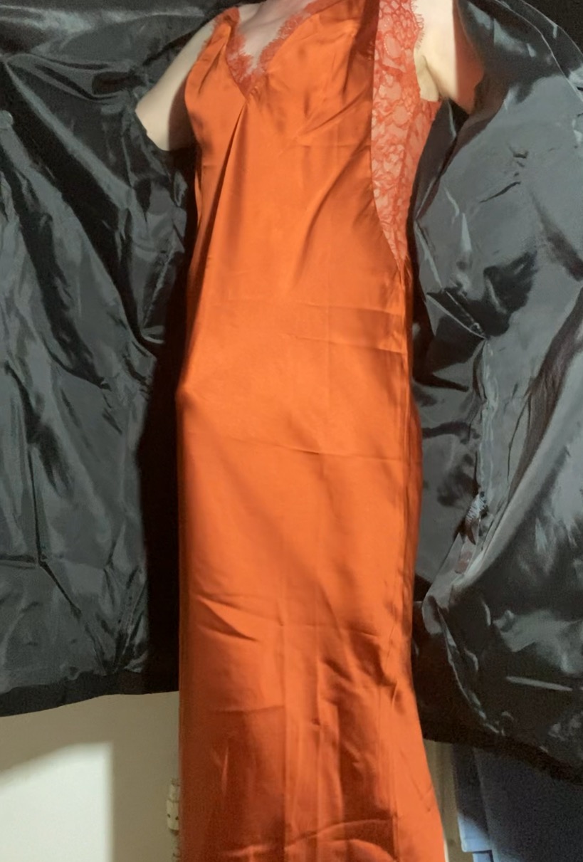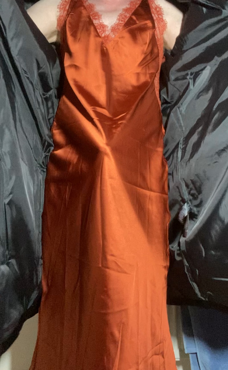 Lovesatin01 wrote: Tue Aug 06, 2024 10:15 am Some more satin bulging in my new asos satin dress and asos long satin coat.