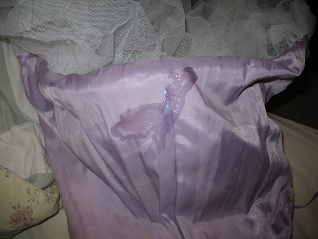 That's exactly how you treat a dress. Smash it repeatedly til it's all discolored and unrecognizable.