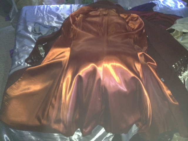 Thank you both for posting photos . Love the colors of these shimmering , soft luxurious lined satin coats