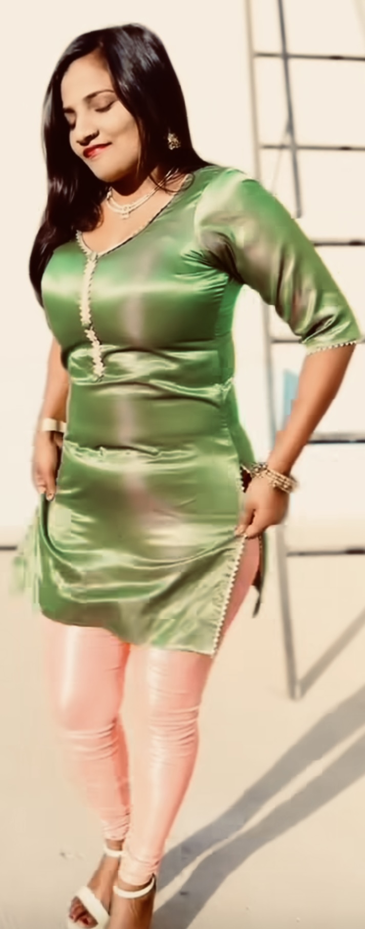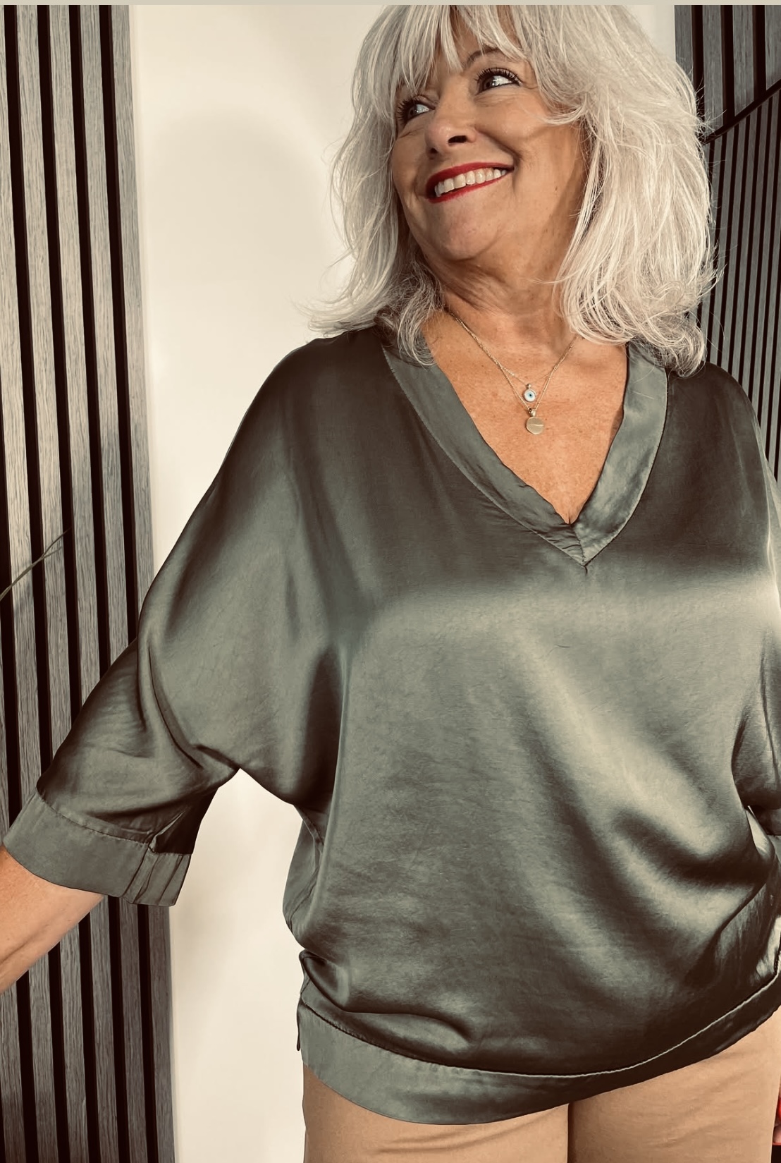 Mature lady loves satin