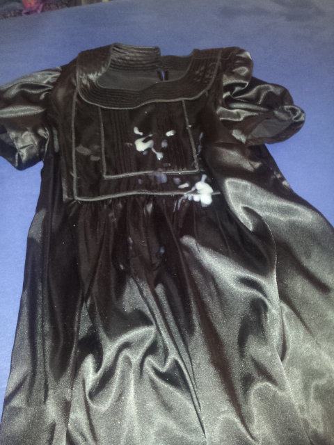 Awesome pics of the destroyed dress. Wish you could've came on it a several times. Cum stains show up best on black. But nice job and thanks for sharing!!