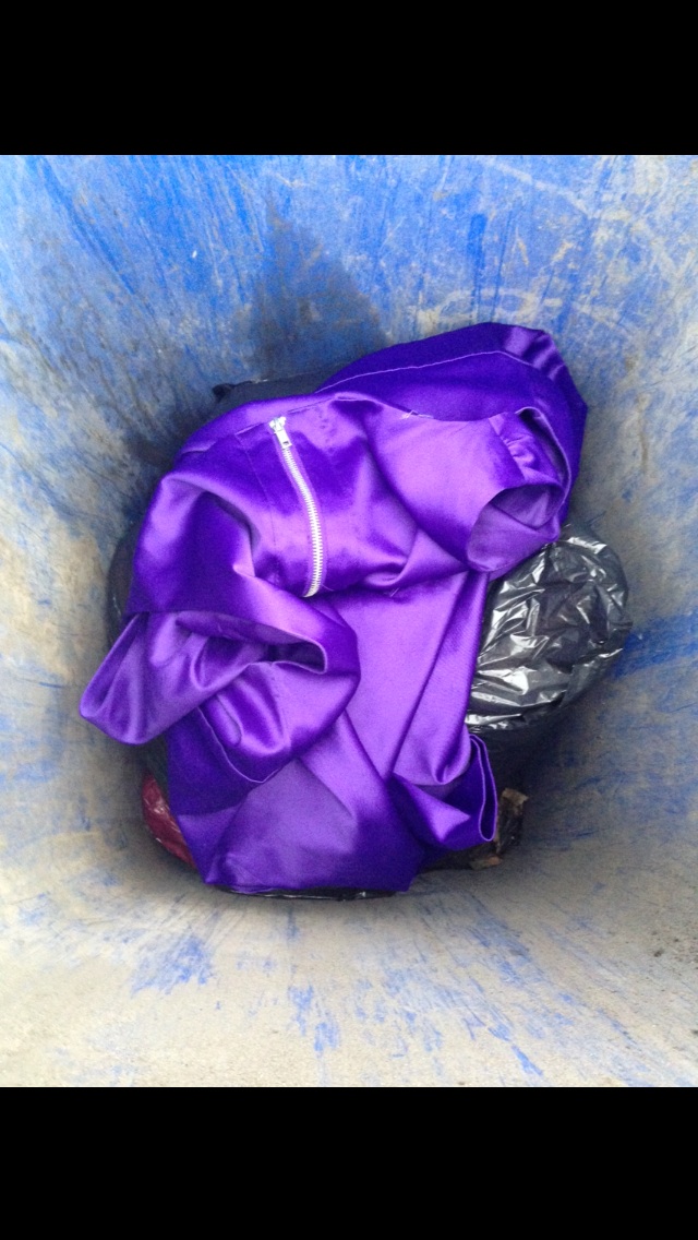 "she had the dress rammed into the bin in the bathroom".....I like that