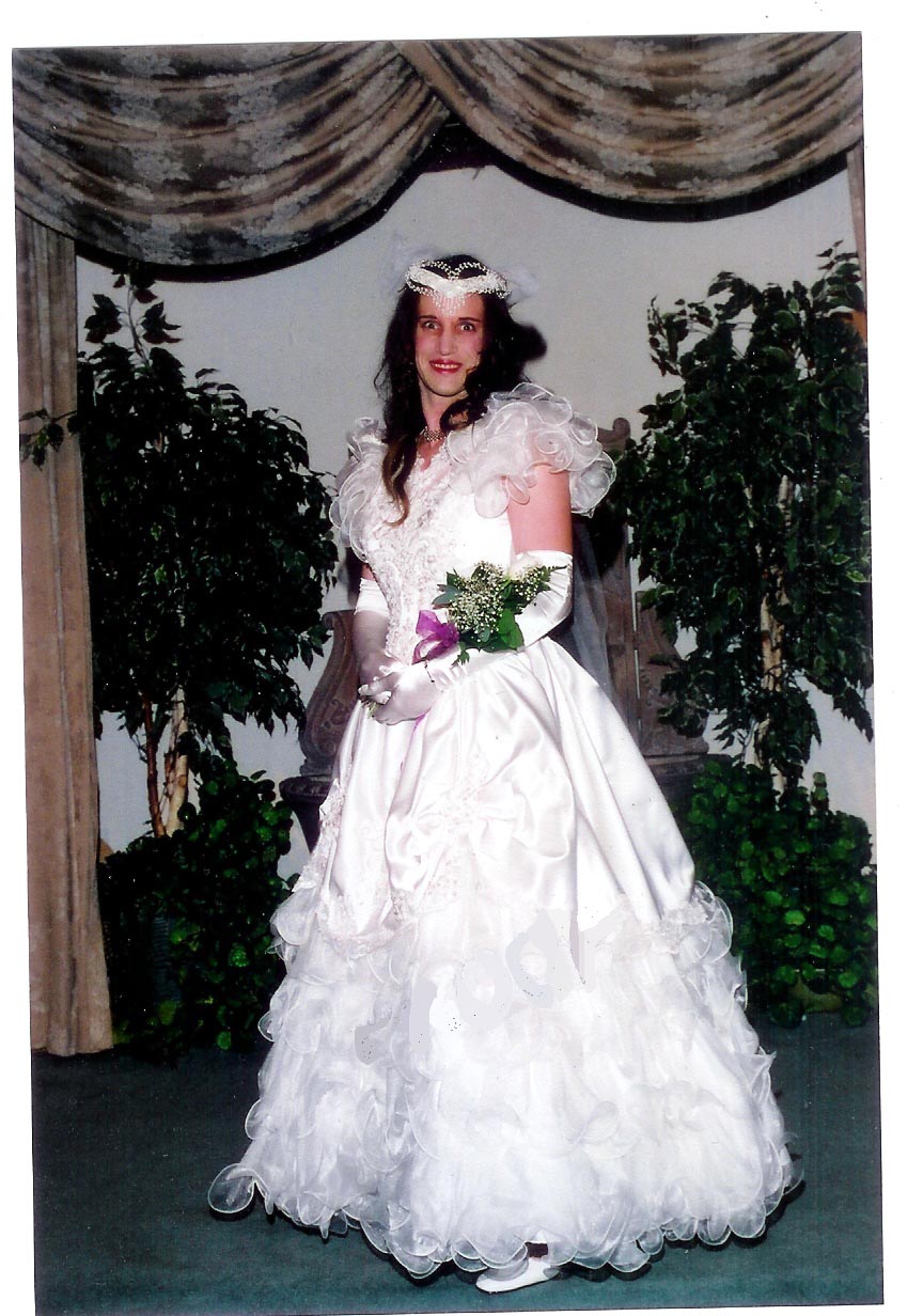 Oh what fun I had this morning. I've been going through a little bit of a hard time on my recovery from open heart surgery I had done on April 28 of this year. My wife told me point blank, " Go get your wedding dress on so you can try out the new white satin gloves I got for both of us." So I wasn't alone while getting myself off in my dress, my wife stroked me in other places, and just before I had one of the best orgasms I've had in a while, she put one of my older satin gloves over my cock, and I came REALLY HARD INTO IT!!! I thank heaven, every time I can for how supportive she is and how she knows what makes me tick when wearing my wedding dress.
