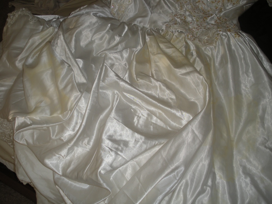 that's one of my favorite dresses to fuck. it's thick silver acetate satin bodice and a silky acetate lining. It's got quite a few more love stains on it since that shot was taken.