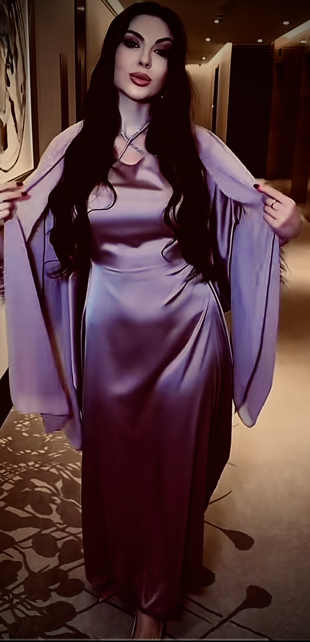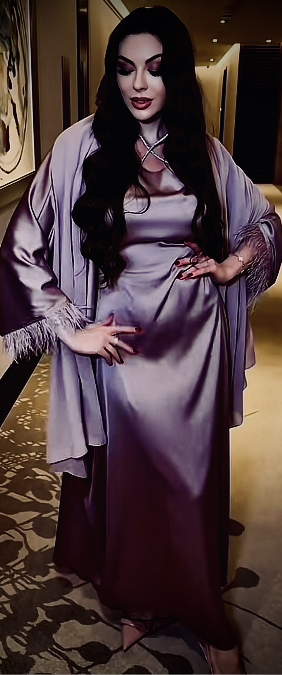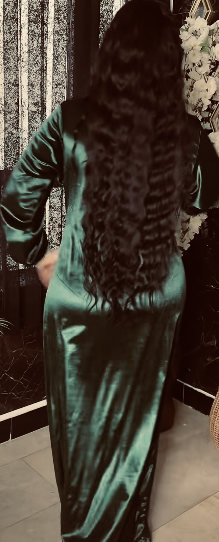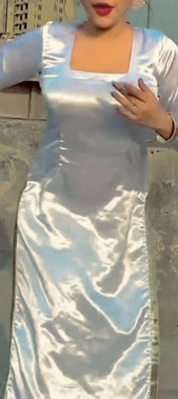 Mature babe in satin silk