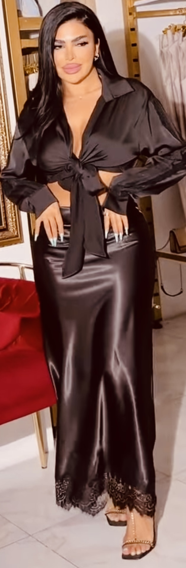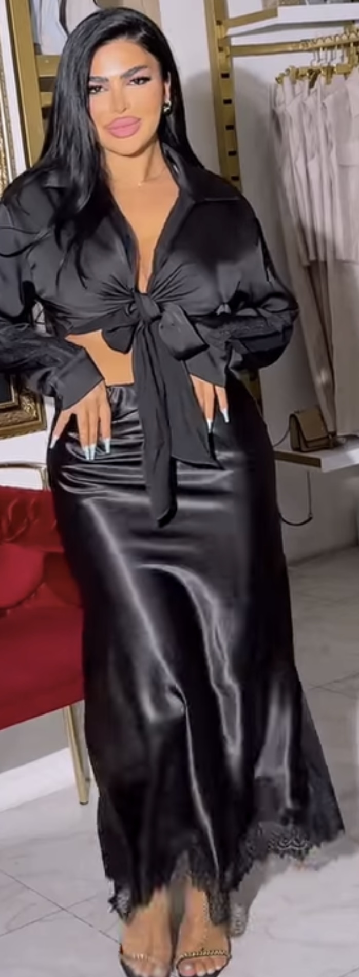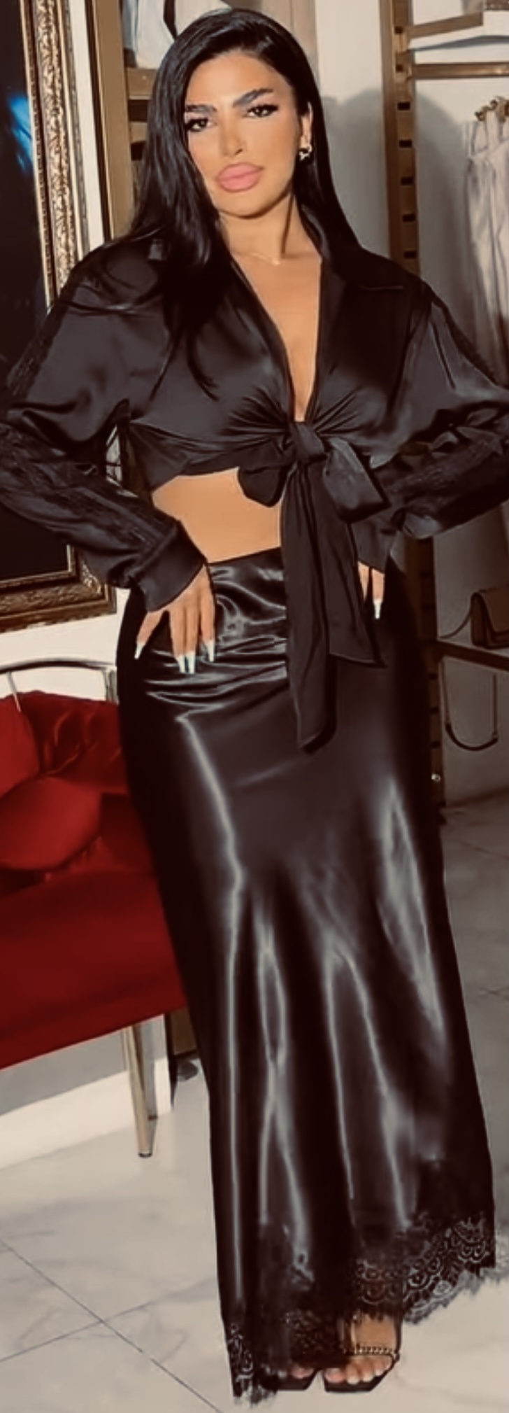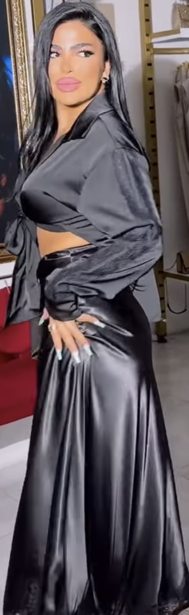 Just feel her satin skirt