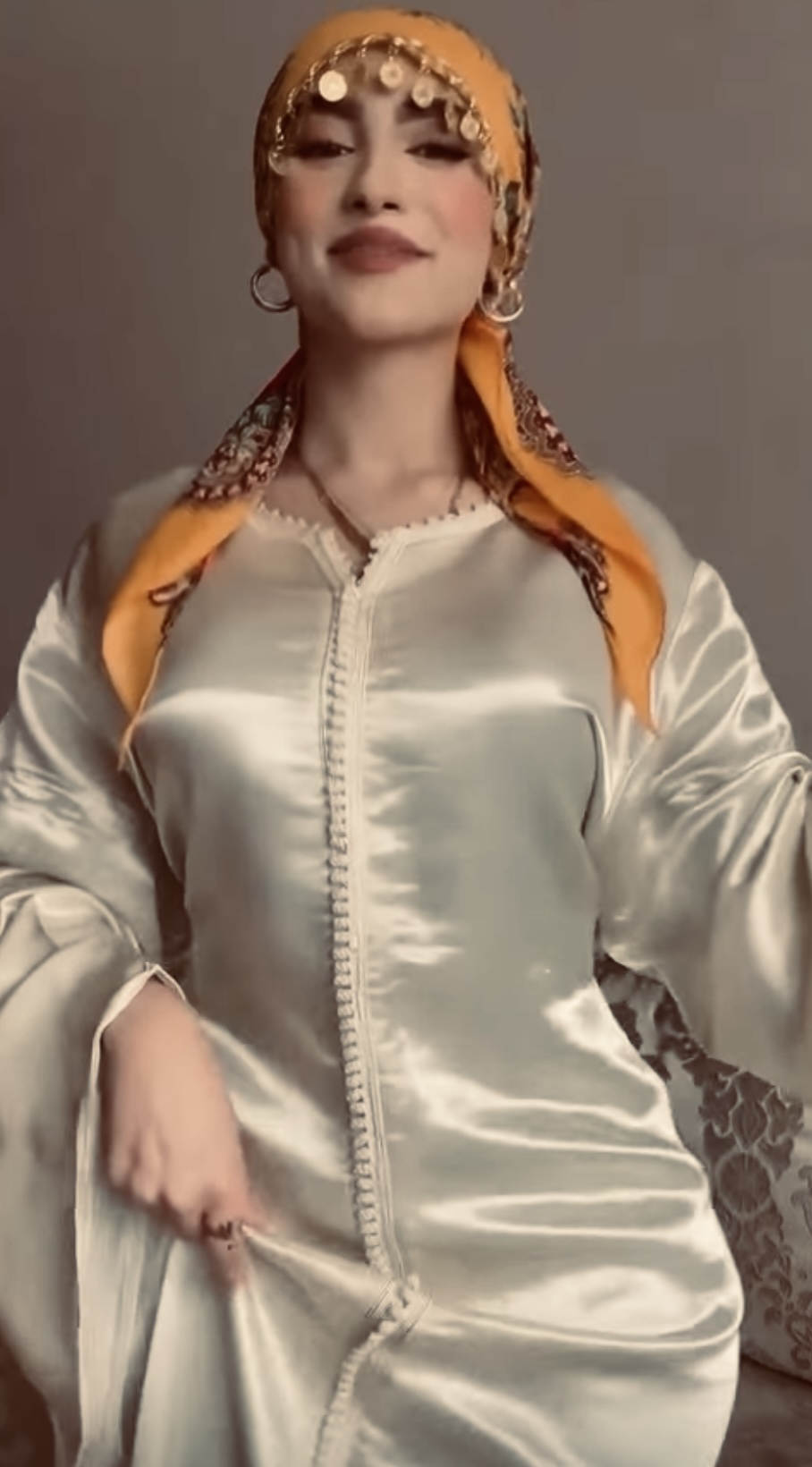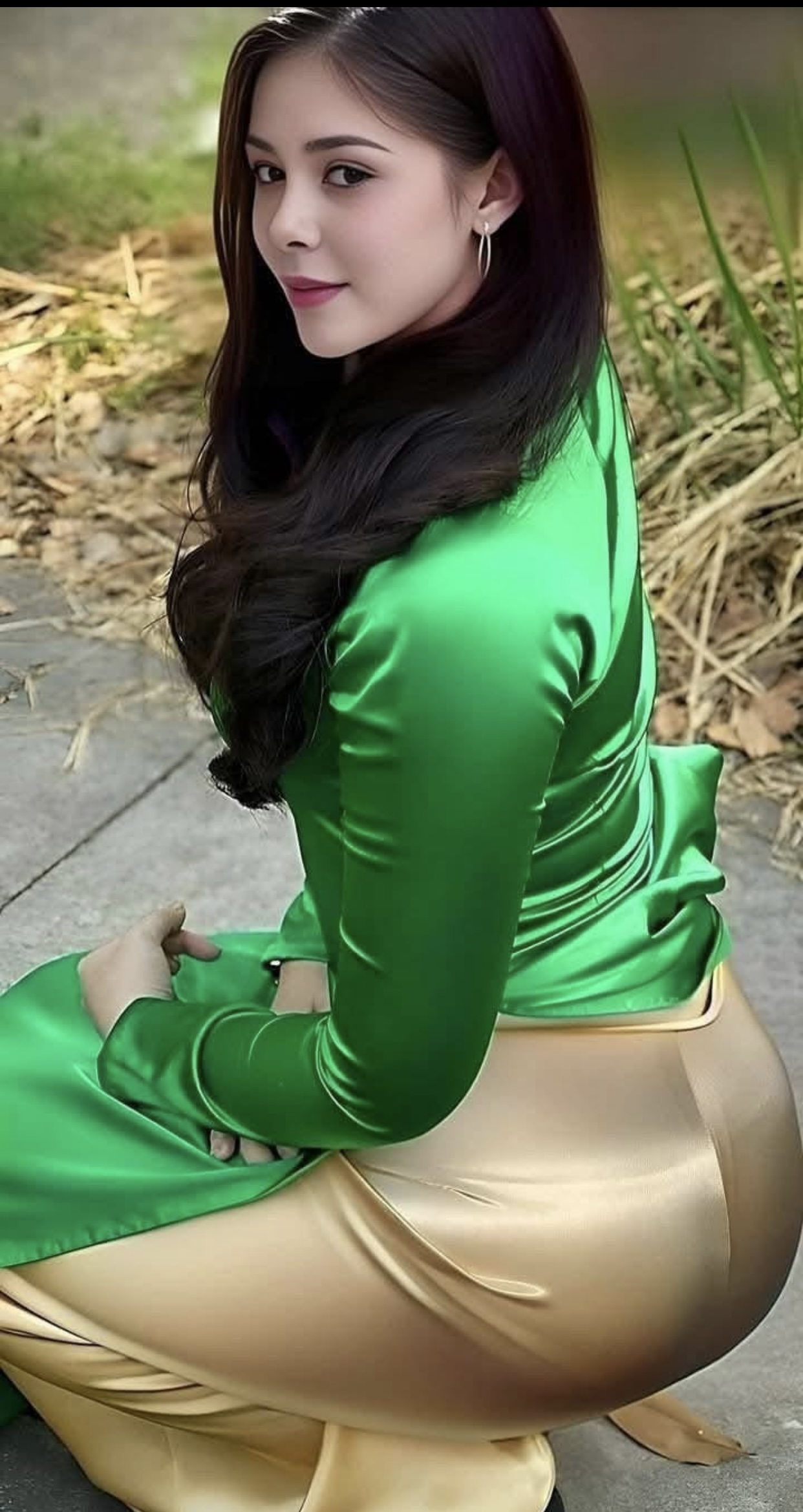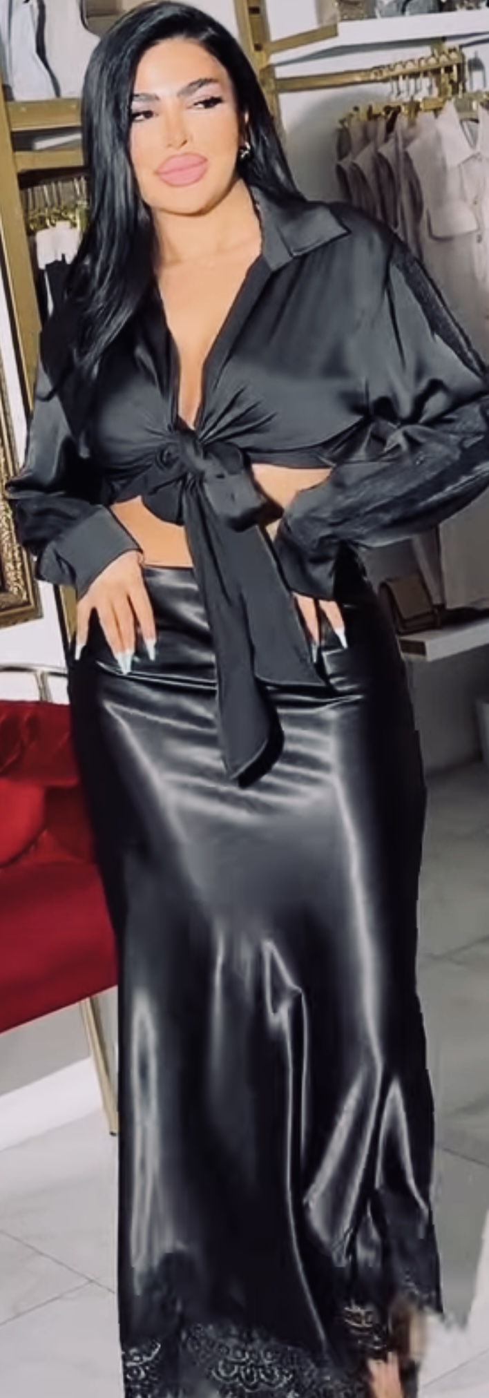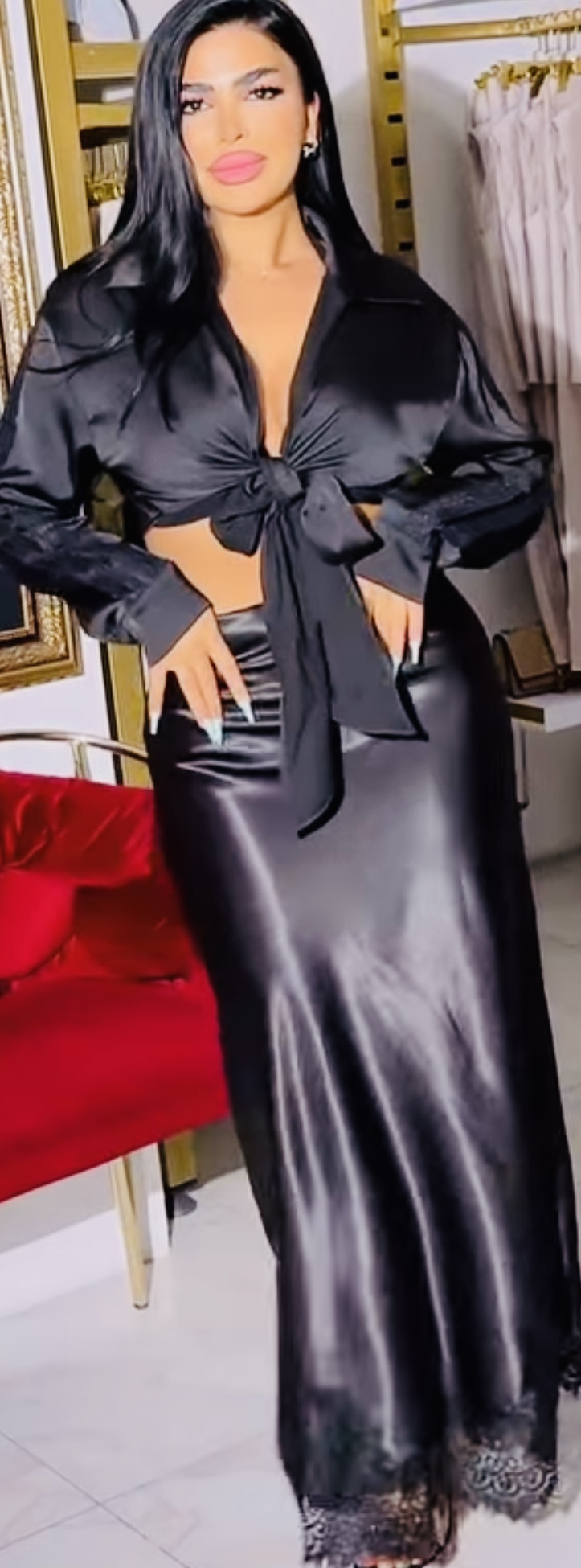 Just feel her satin skirt