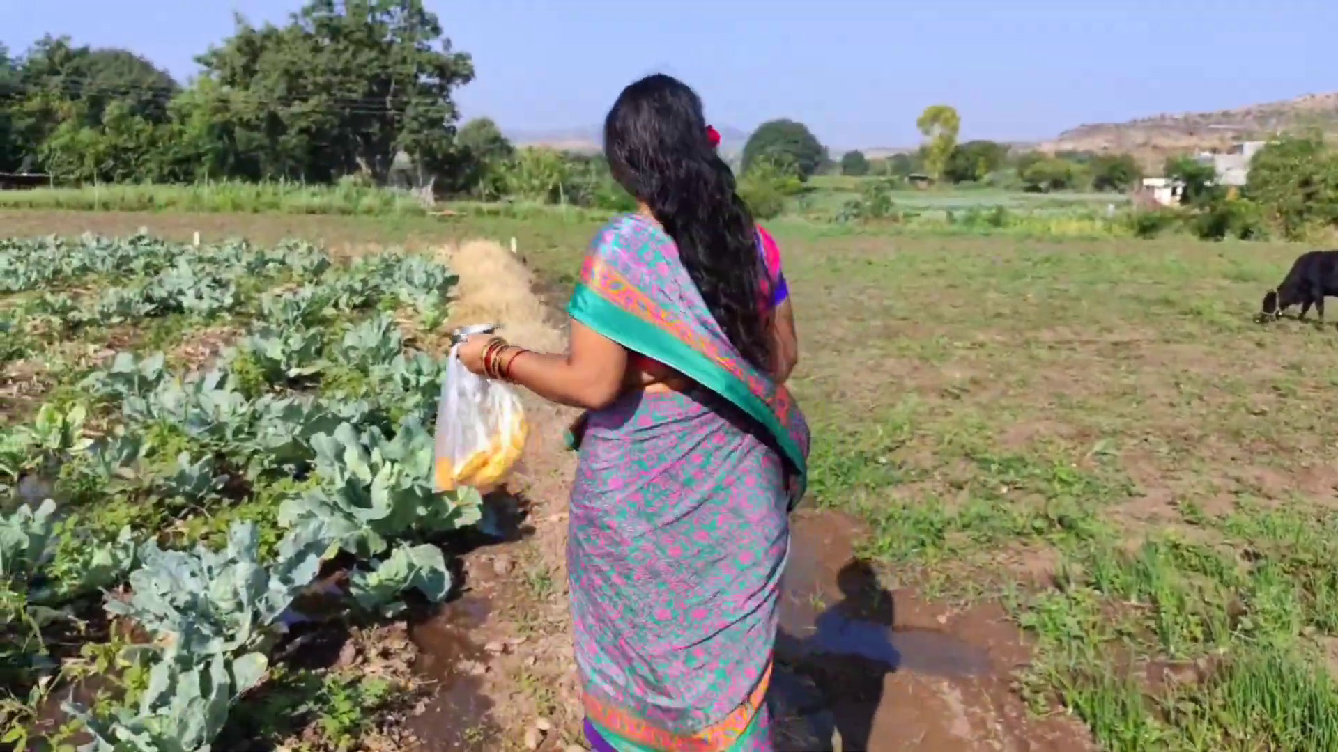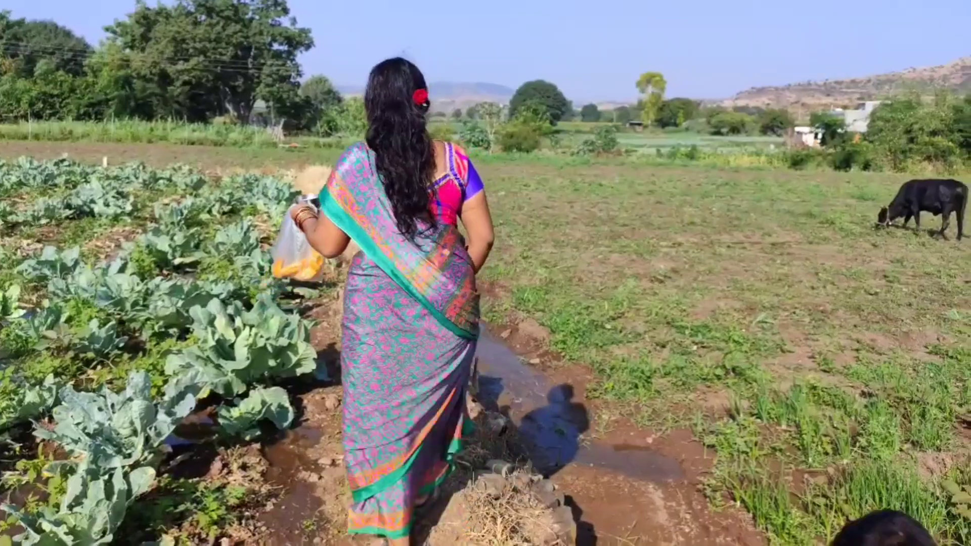 Black satin saree