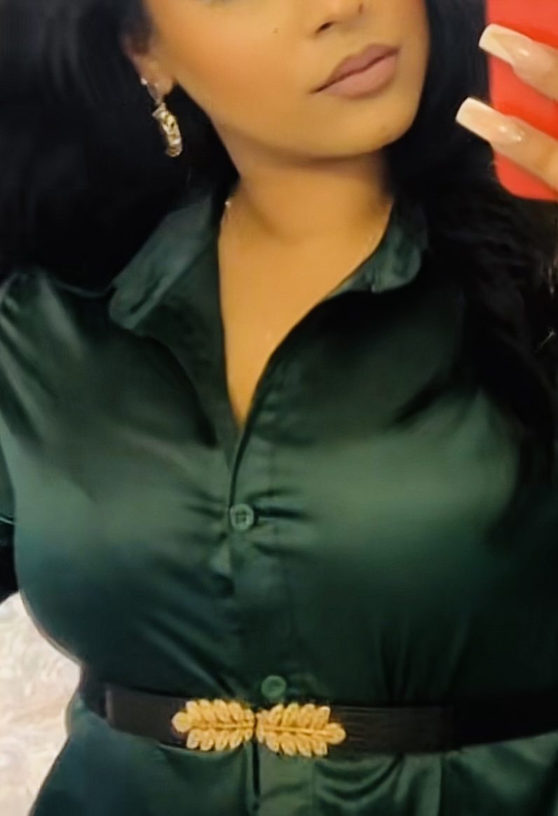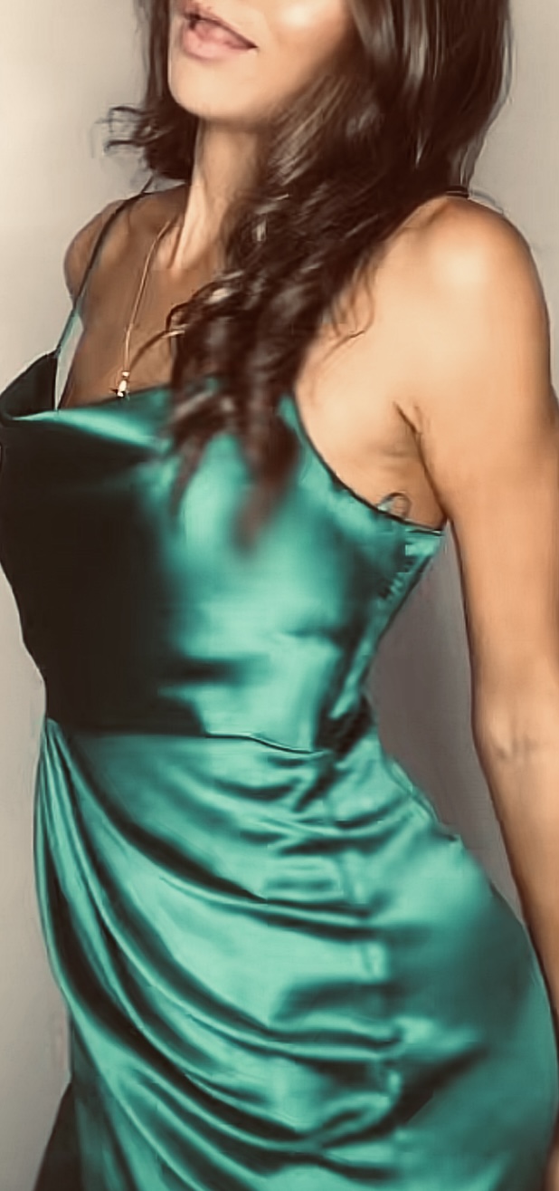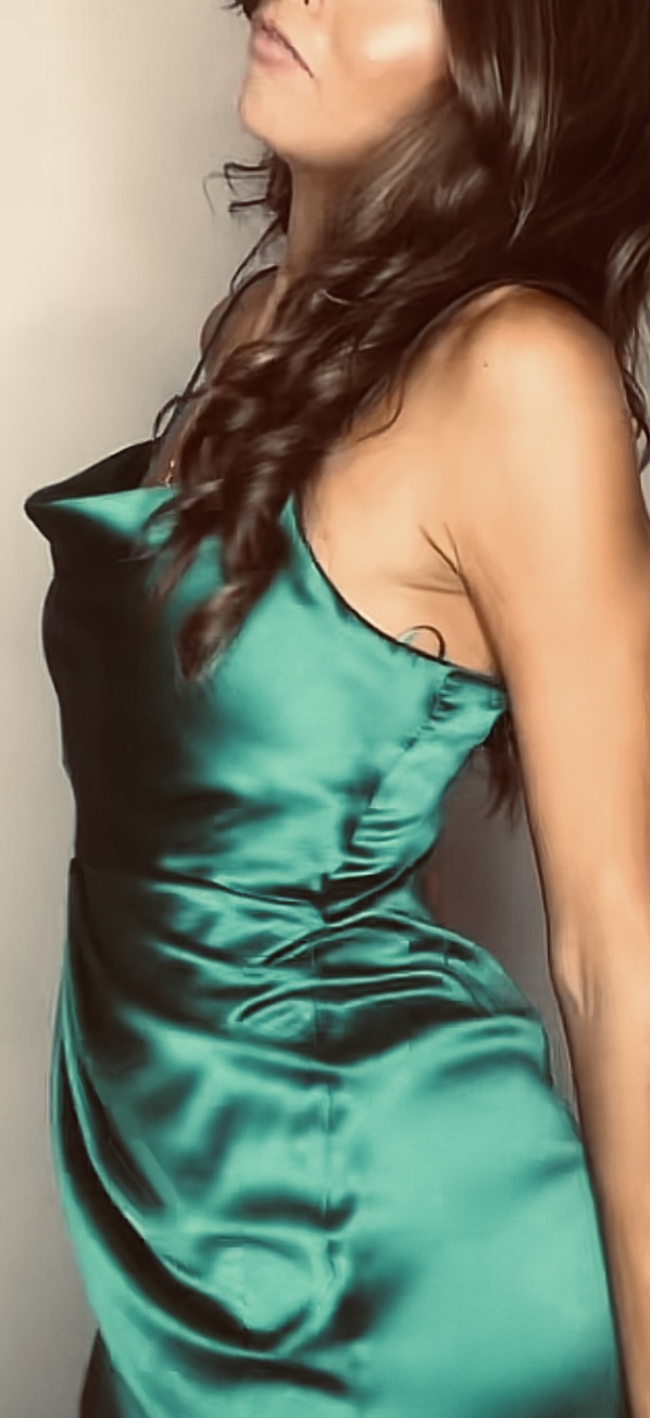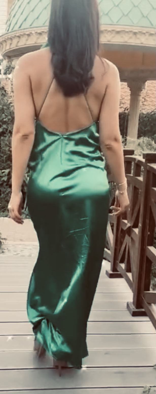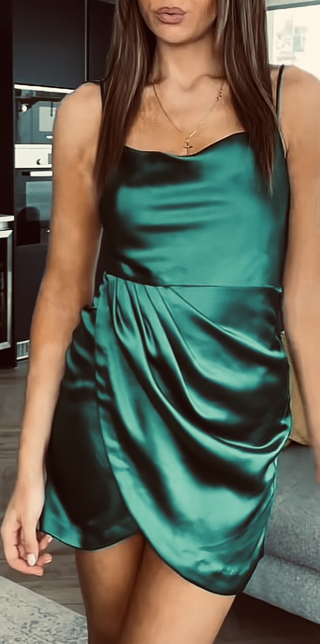 Green satin silk dress