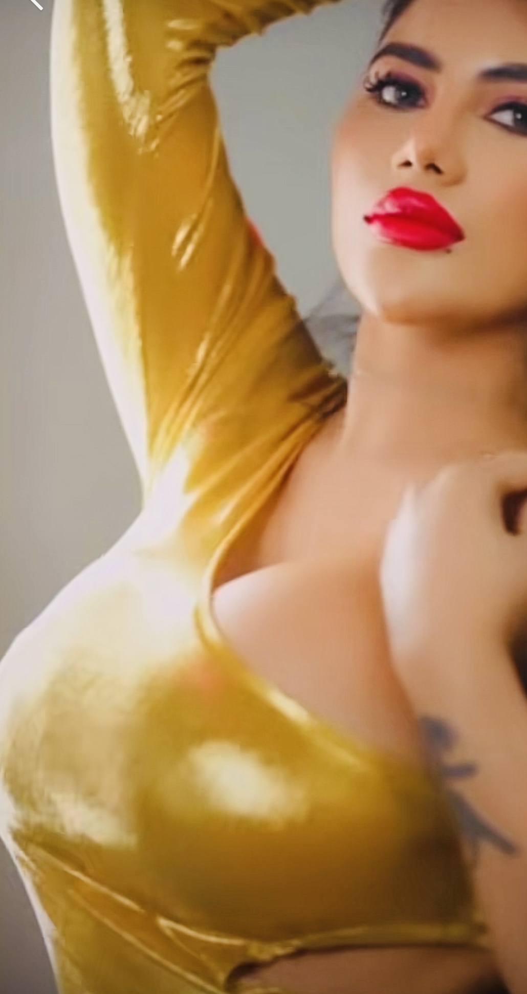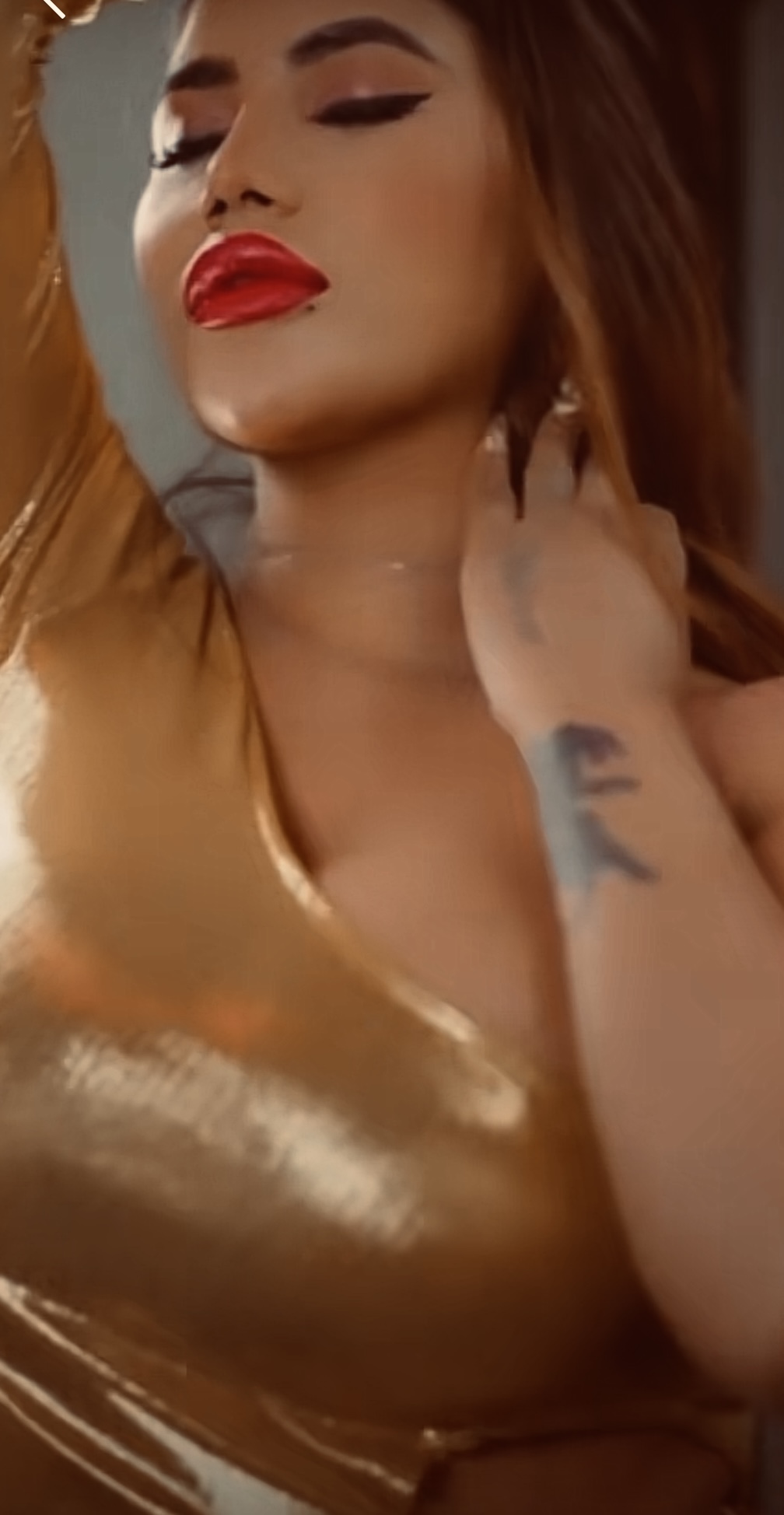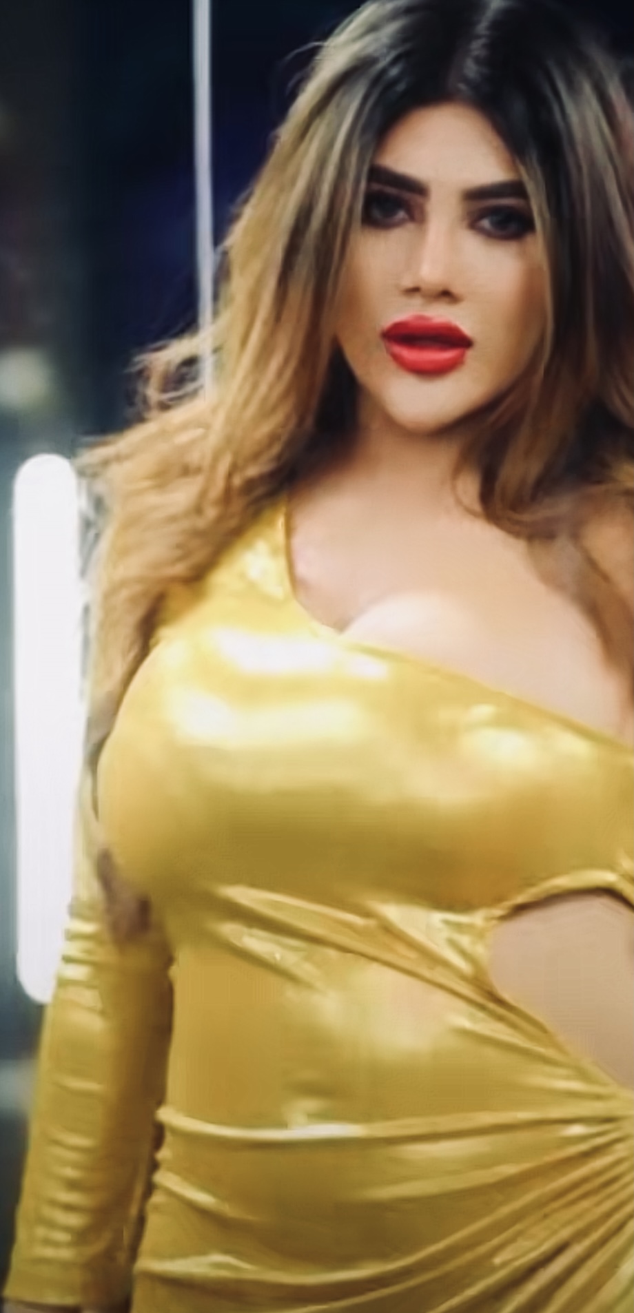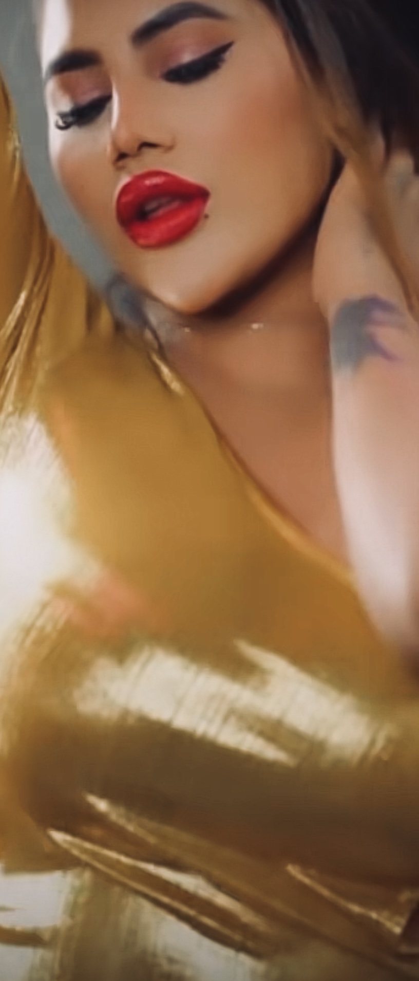 shiny golden yellow & red lipstick ..