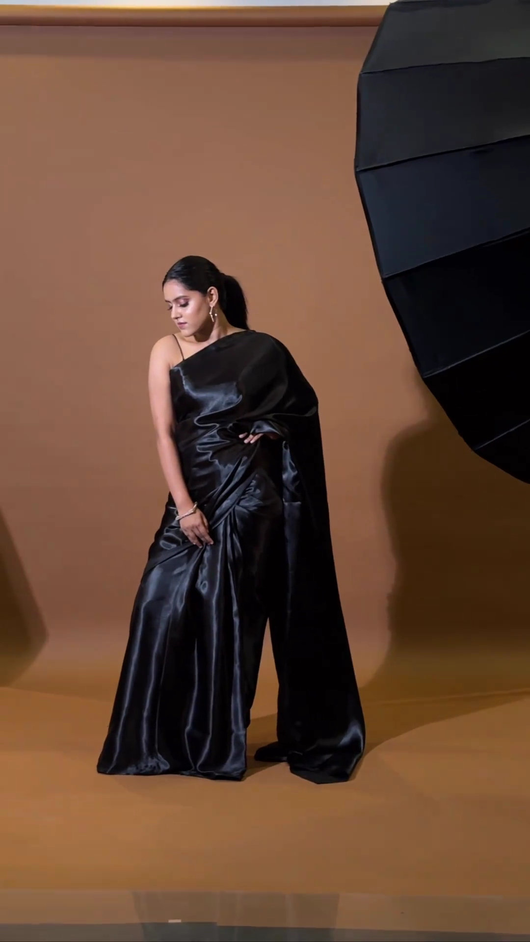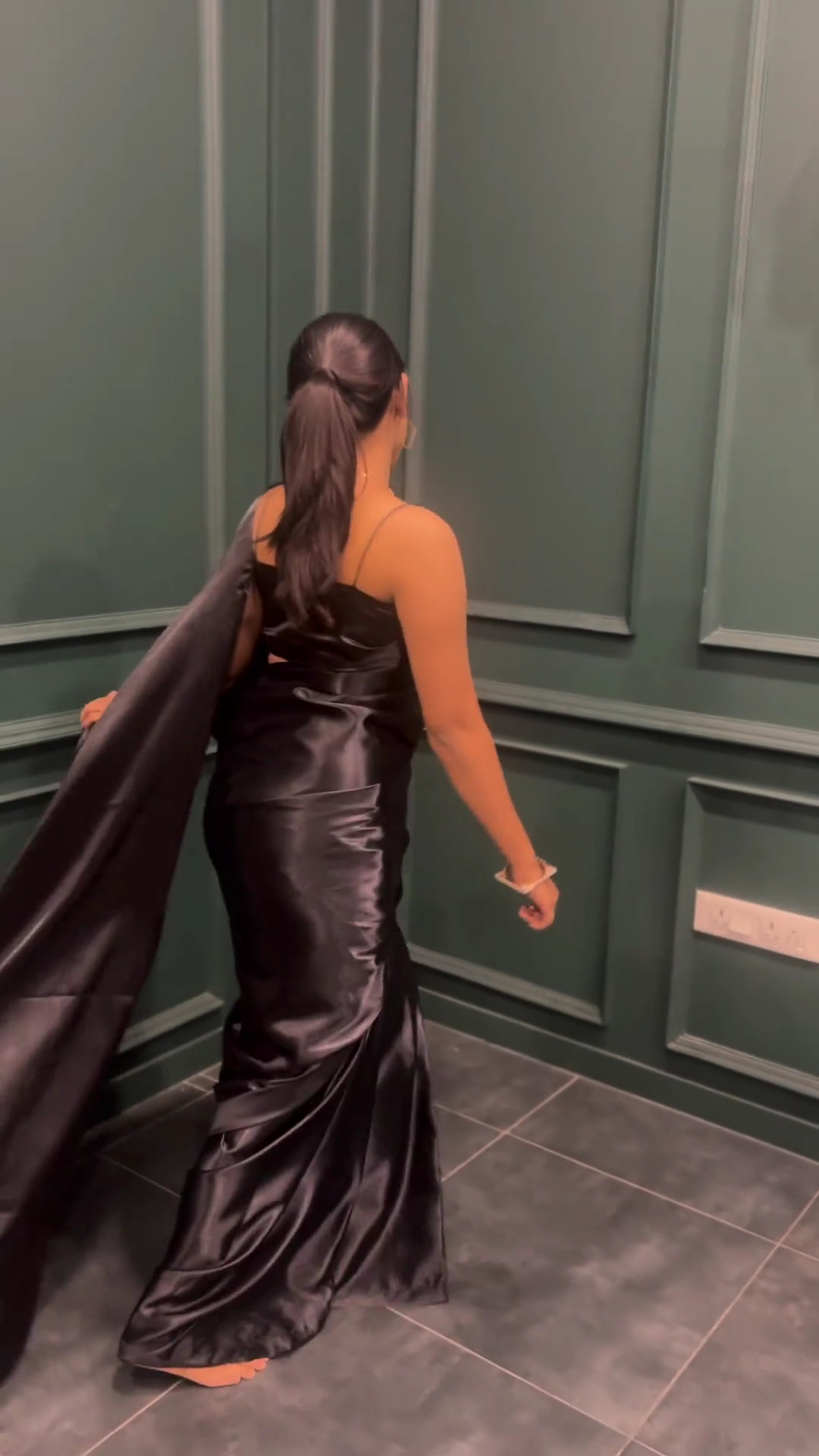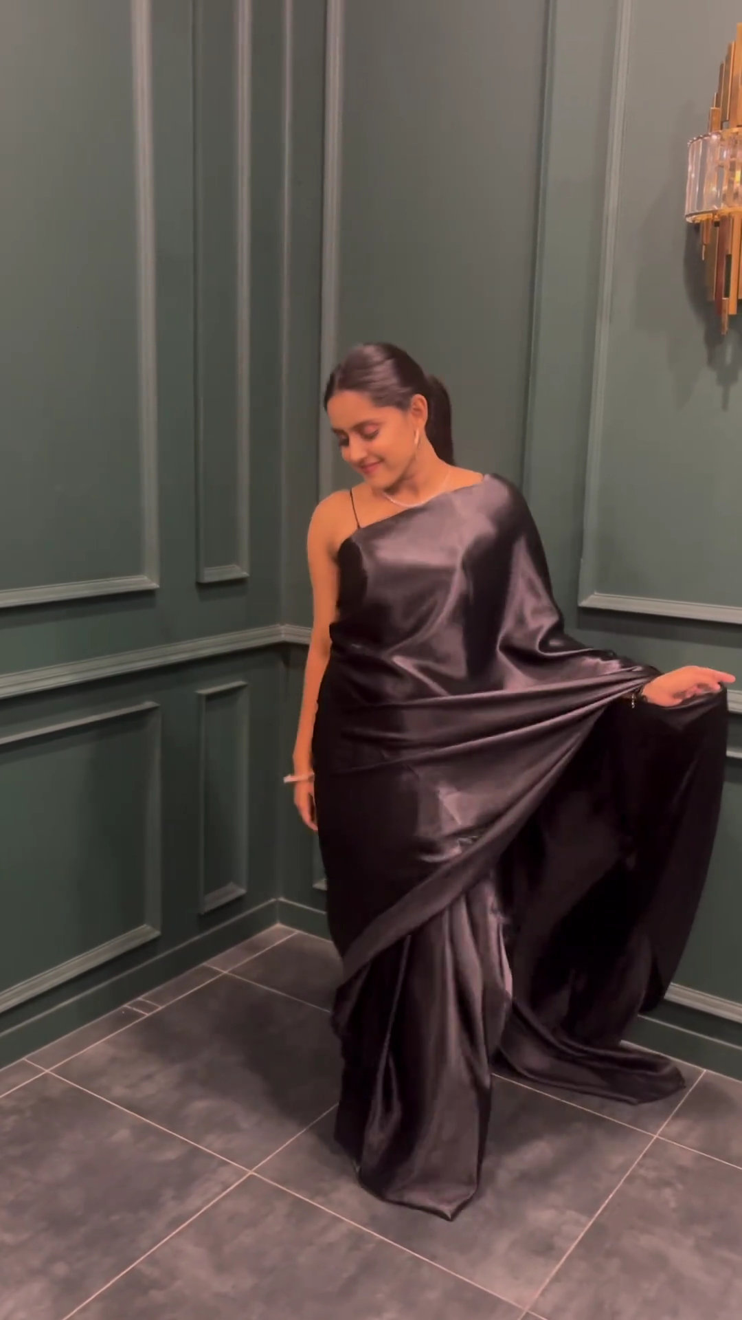 Black satin saree