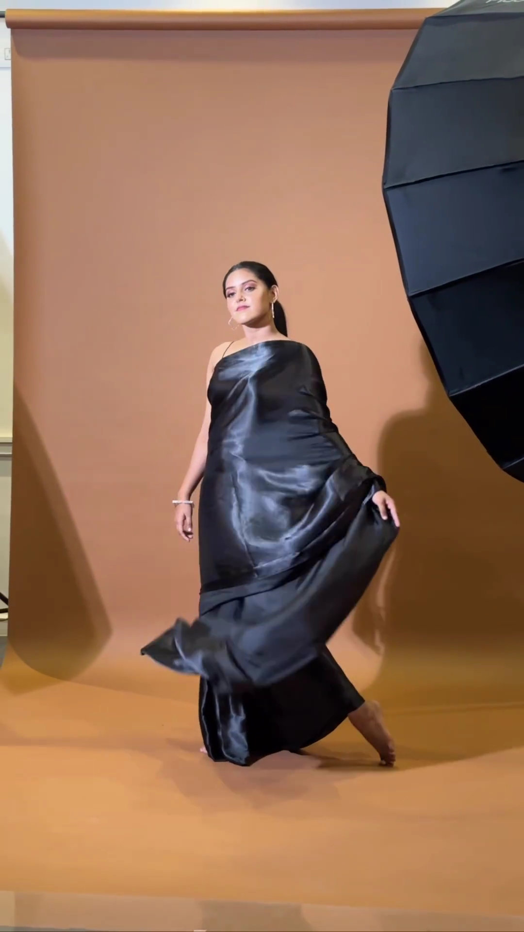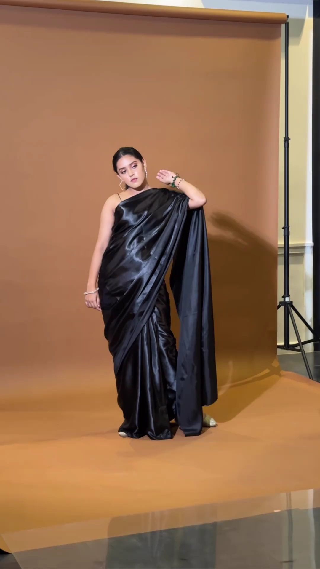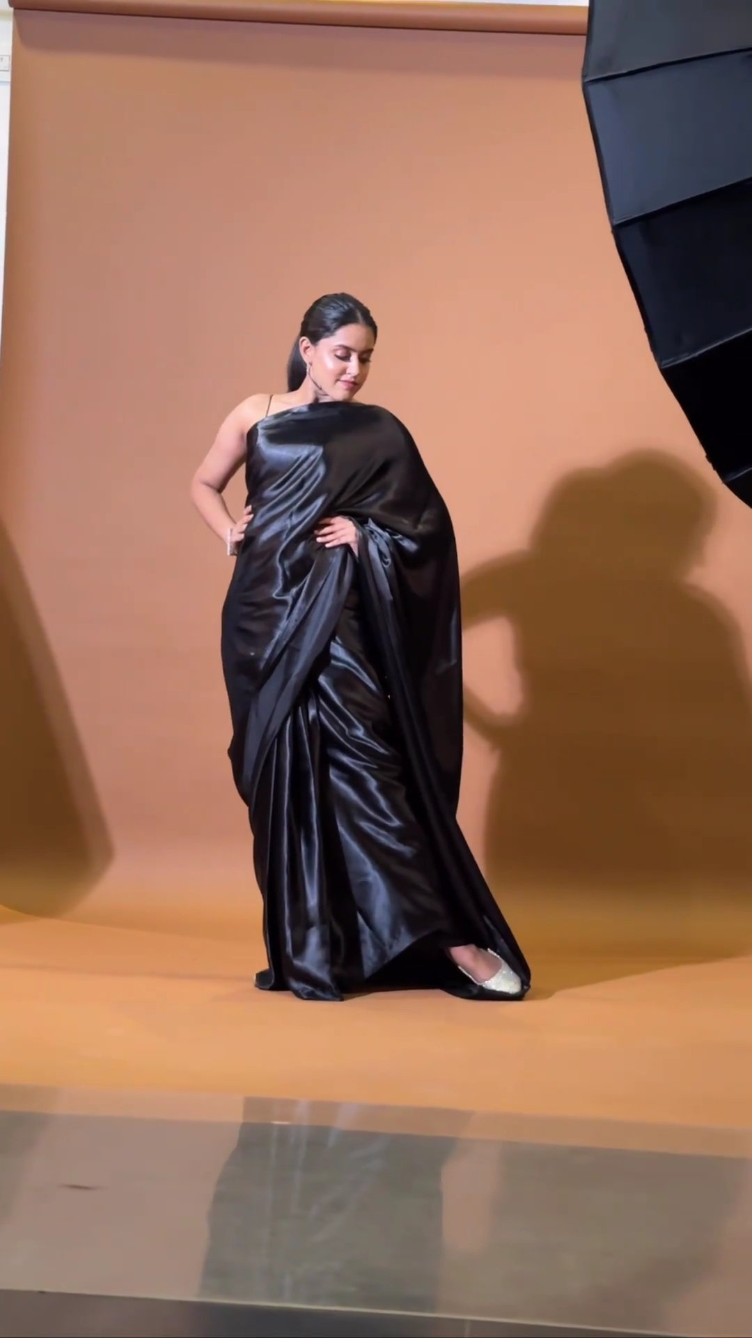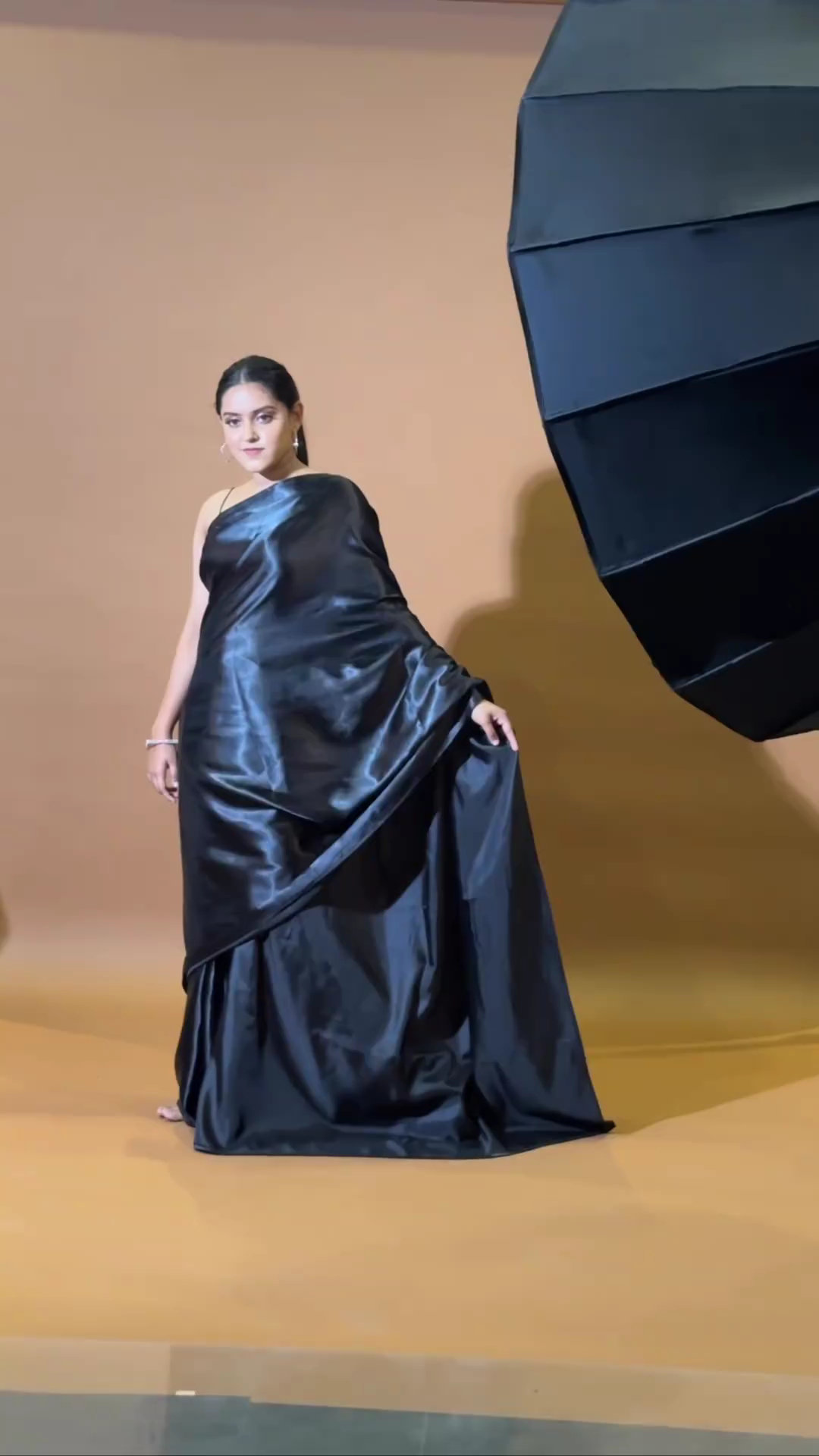 Black satin saree