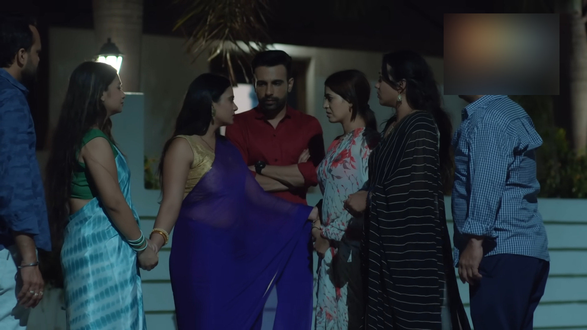 Blue satin saree