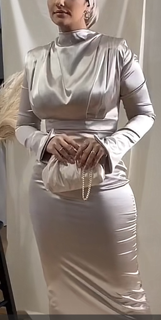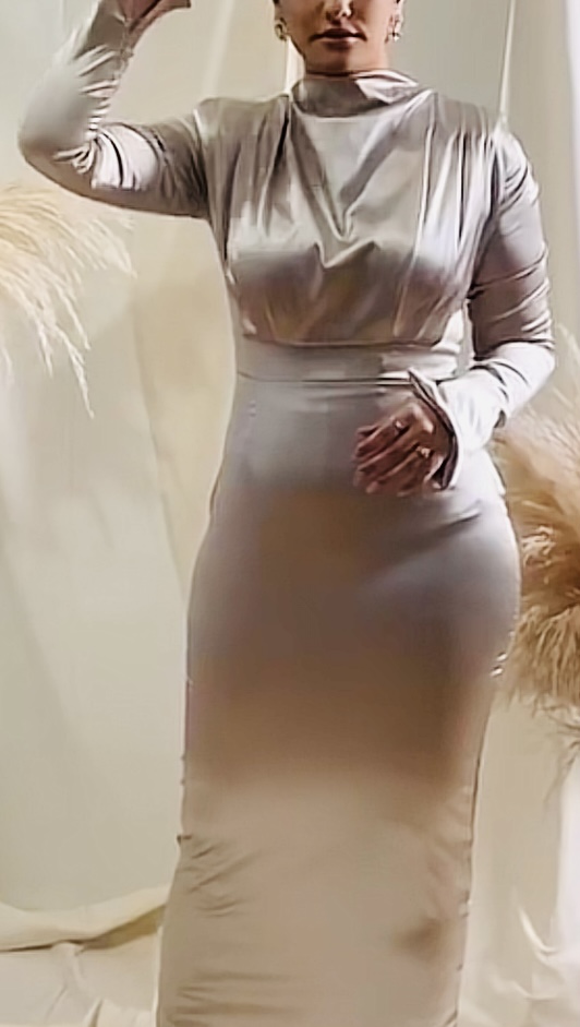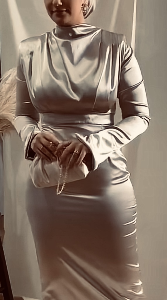 Silver satin silky dress