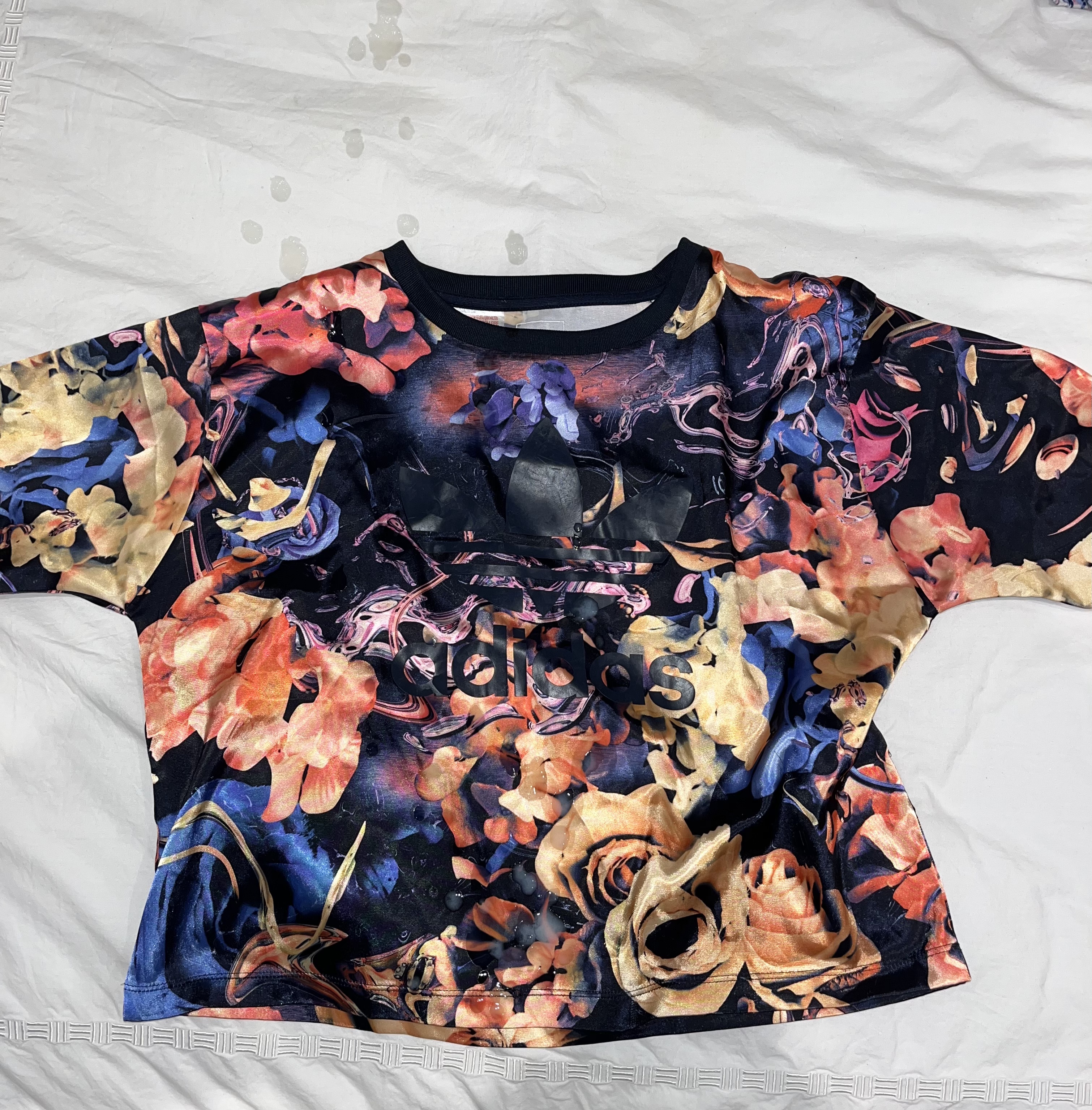 Before and after on this sexy adidas crop top, sadly my load shot out too far!