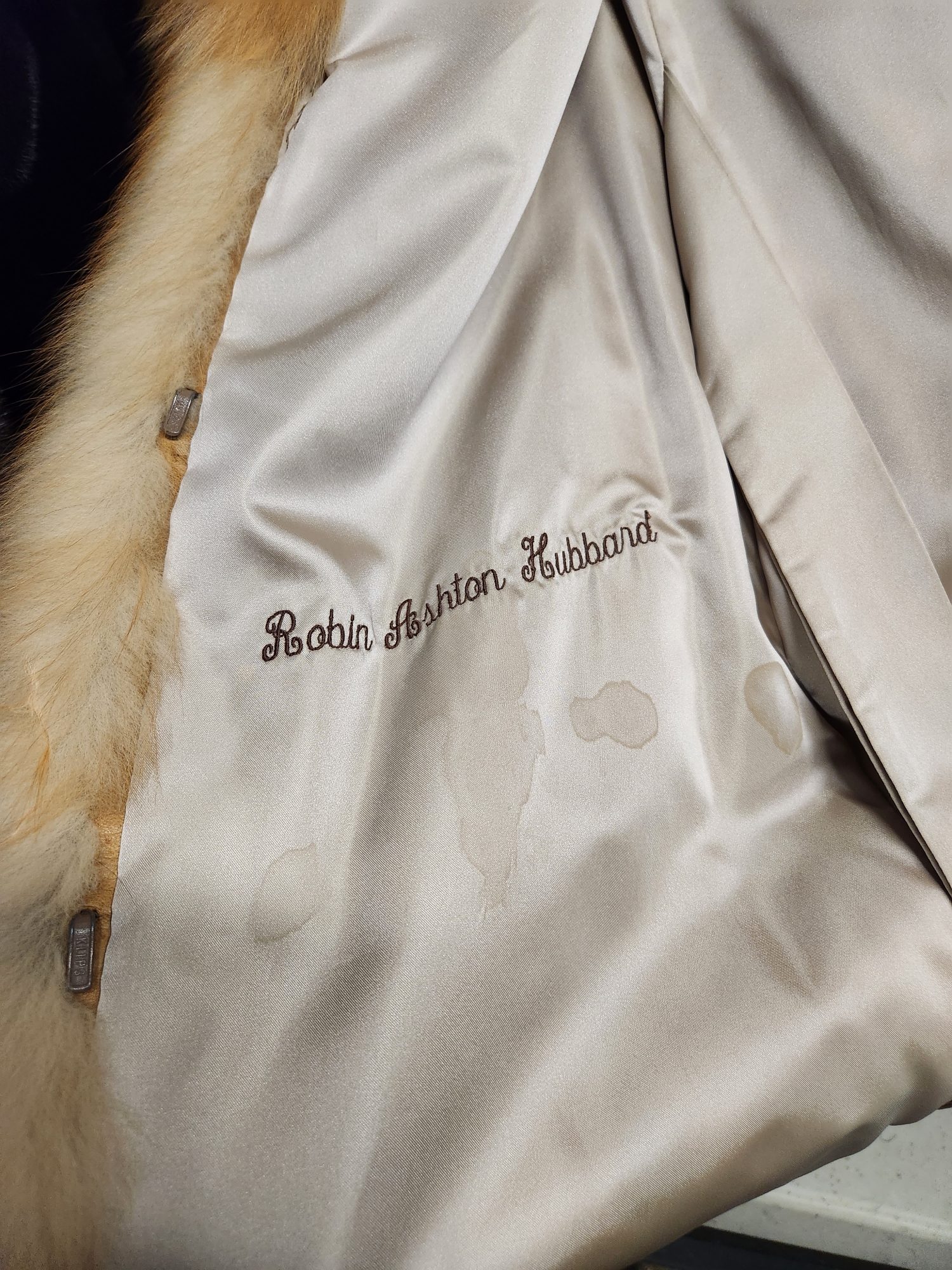 Fur coat lining getting splattered